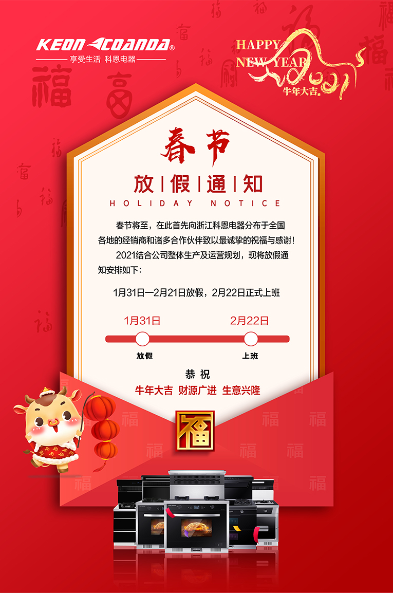 2021結(jié)合公司整體生產(chǎn)及運(yùn)營(yíng)規(guī)劃,現(xiàn)將公司對(duì)春節(jié)放假時(shí)間通知如下: