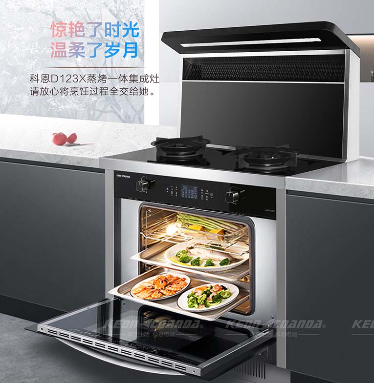 科恩D123X變頻蒸烤消一體智能集成灶為什么頗受消費(fèi)者的喜愛,原因有以下幾方面:1.省空間:科恩D123X集合煙機(jī)、燃?xì)庠睢⒄粝洹⒖鞠?、消毒柜等多種功能于一體,不僅節(jié)省空間還能省下一米櫥柜空間。2.吸油煙能力強(qiáng):比起傳統(tǒng)煙機(jī),科恩D123X離灶臺(tái)距離更近,吸力更強(qiáng),在油煙產(chǎn)生的第一時(shí)間就可以將其吸走,另外油煙的過濾網(wǎng)采用不沾油特氟龍材料,易清洗、耐高溫、抗腐蝕!3.大火力爆炒:尤其是爆炒菜,D123X鑄鐵鍋架帶雙聚能環(huán)設(shè)計(jì),四通道獨(dú)立引射5.0KW大火力猛火爆炒,寬裕立體上進(jìn)風(fēng)充分燃燒,提高燃燒效率,降低一氧化碳排放。
