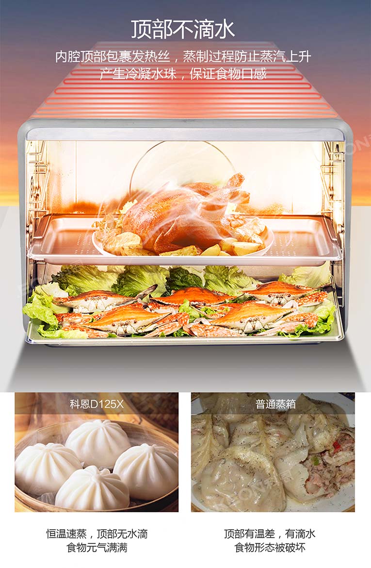 集成灶十大品牌、廚電行業(yè)十大品牌科恩集成灶內(nèi)置十大烹飪模式,溫度、火候、時(shí)間自由掌控,廚房小白輕松蒸出美味健康食物。另外,“蒸”就怕的就是有水進(jìn)入到食物里面去了,那樣的話食物就會(huì)變味,科恩集成灶就不會(huì)發(fā)生這樣的情況。4D噴氣式蒸烤,頂部也不漏水,蒸出來的食物就是原汁原味,口感更是能夠促動(dòng)你的味蕾。