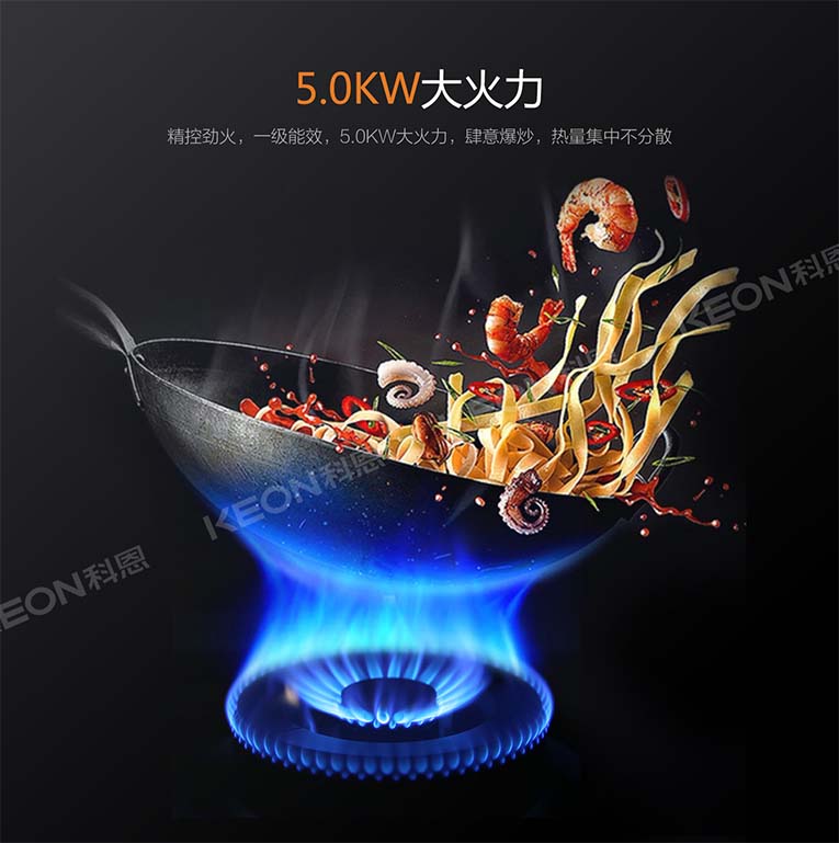 做菜好不好吃,火力也是關(guān)鍵,隨著火力調(diào)節(jié)就會(huì)自動(dòng)配氧,從而就保證了炒菜火力的穩(wěn)定輸出,集成灶十大品牌、廚電行業(yè)十大品牌科恩集成灶5.0KW猛火直噴,不管是小火、文火還是大火都能夠滿足你的炒菜對(duì)于火力的需求。
