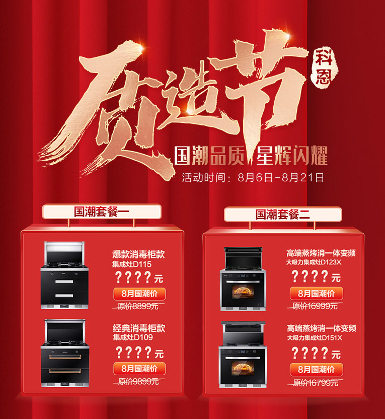 集成灶十大品牌、廚電行業(yè)十大品牌科恩八月質(zhì)造節(jié)大型全國促銷活動(dòng)強(qiáng)勢來襲,國潮品質(zhì),星輝閃耀,絕對給你想不到的洪荒之“利”!