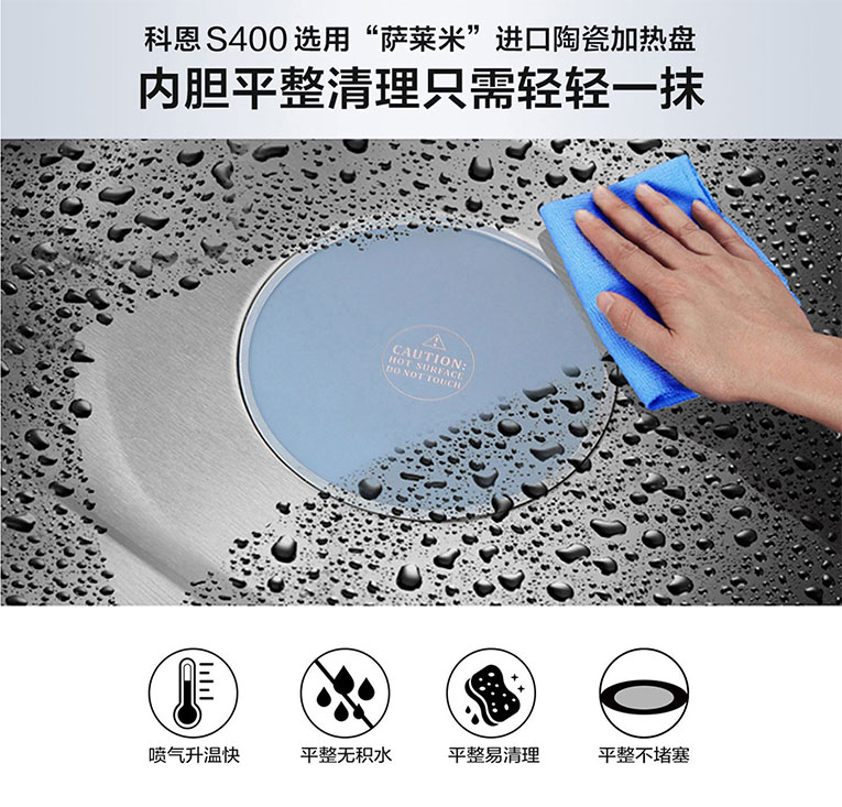 集成灶十大品牌、廚電行業(yè)十大品牌科恩S400蒸烤消一體集成灶擁有73L大容量空間,與傳統(tǒng)腔體不同,S400蒸烤箱頂部采用微晶玻璃加熱,有效杜絕冷凝水,解決蒸烤時(shí)油脂滴落對(duì)食物造成的影響;另外蒸烤箱還擁有雙蒸汽孔設(shè)計(jì),快速出蒸汽包裹食材,蒸出美味蒸出鮮;S400底部采用進(jìn)口“薩萊米”陶瓷加熱盤,跟傳統(tǒng)煮盤相比不僅打理更便捷,還能杜絕堵塞、千滾水的產(chǎn)生。