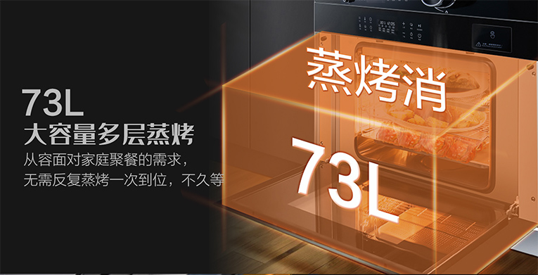 S400智能語(yǔ)音蒸烤消一體集成灶擁有73L大容量多層蒸烤,無(wú)需反復(fù)蒸烤一次就能到位。十大模式30-200℃廣域控溫,普蒸、強(qiáng)蒸、嫩烤、風(fēng)烤、燒烤、快烤、解凍、發(fā)酵、凈化、除垢模式自由選擇,噴氣式4D立體蒸加底部陶瓷加熱盤(pán),右側(cè)雙孔蒸汽噴射,迅速升溫包裹食材,“蒸”服味蕾!