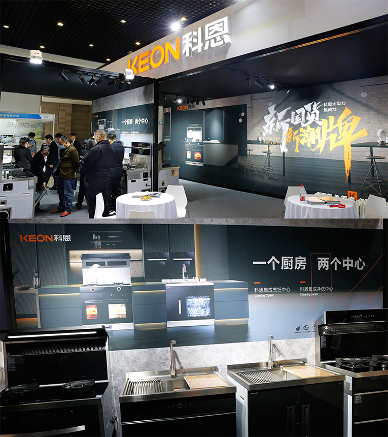 集成灶十大品牌、廚電行業(yè)十大品牌科恩集成灶半敞開式展位更顯非凡氣度,“新國貨、新潮牌”時(shí)尚氛圍更是吸睛無數(shù),通過零距離體驗(yàn)產(chǎn)品,感受科恩產(chǎn)品帶來的樂享智慧廚房體驗(yàn)。作為嵊州集成灶軍團(tuán)主力軍,攜“一個(gè)廚房,兩個(gè)中心”集成烹飪中心S系列集成灶與集成凈洗中心X系列集成水槽等多款凝聚匠心與智能之作重磅亮相。