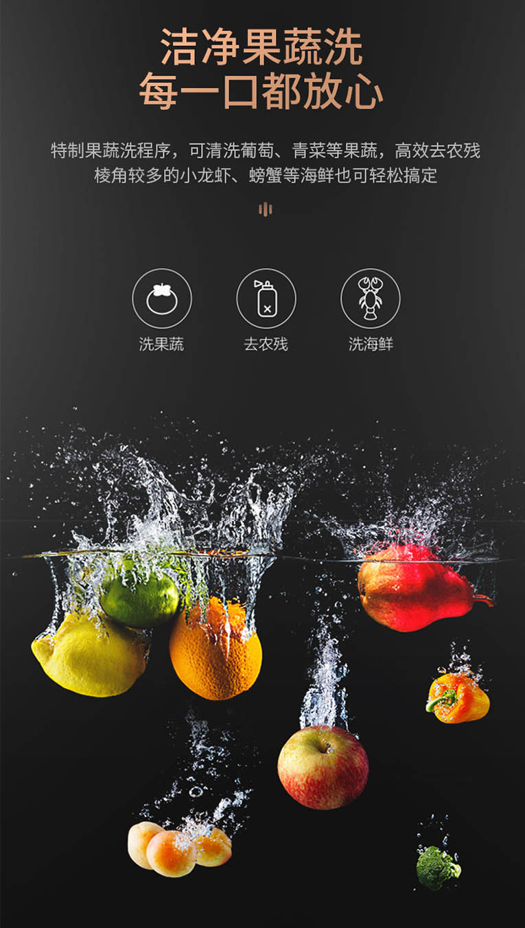 洗消烘存五合一,5大清洗模式、軟水除水垢、PTC加熱技術、高溫+UV消毒、72小時新風系統,雙層靈活碗籃設計,湯鍋、炒鍋、大件廚具也能輕松洗。另外還搭載特質果蔬洗程序,可清洗葡萄、青菜等果蔬,高效去農殘,螃蟹等海鮮也可輕松搞定。