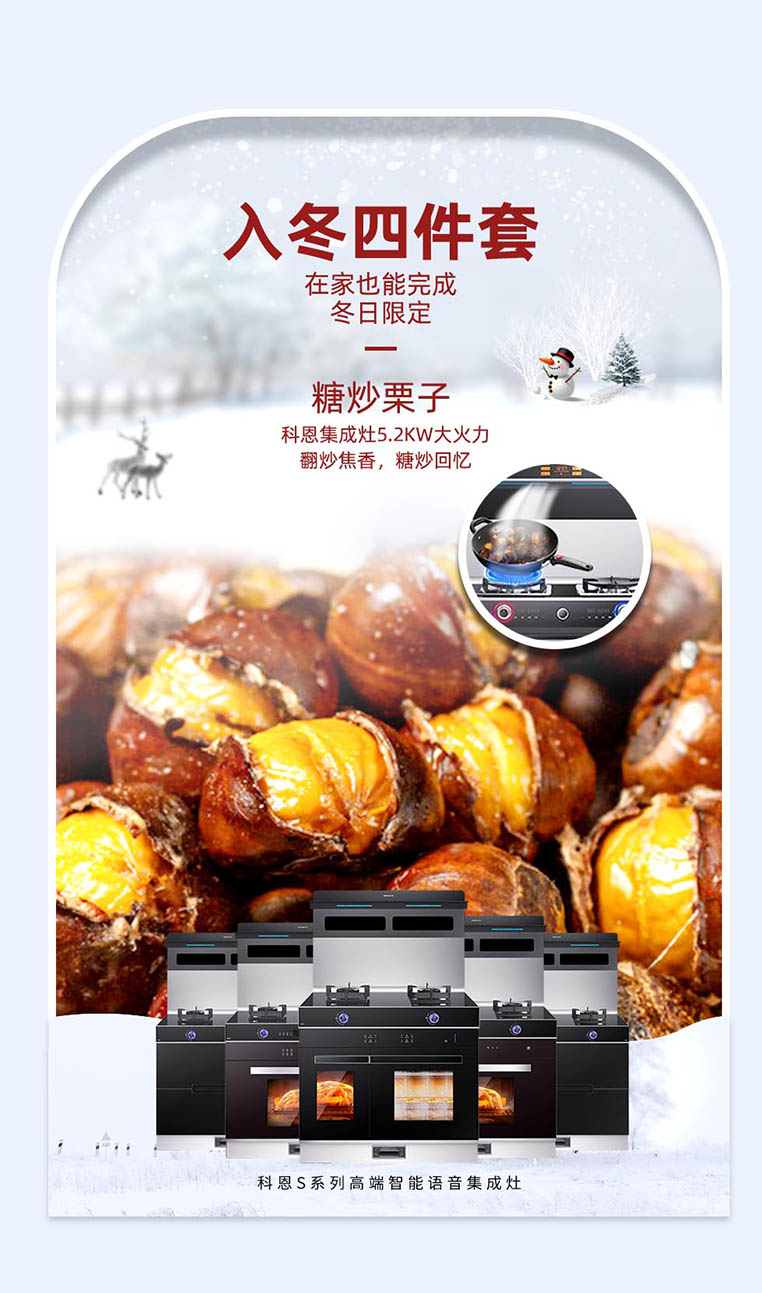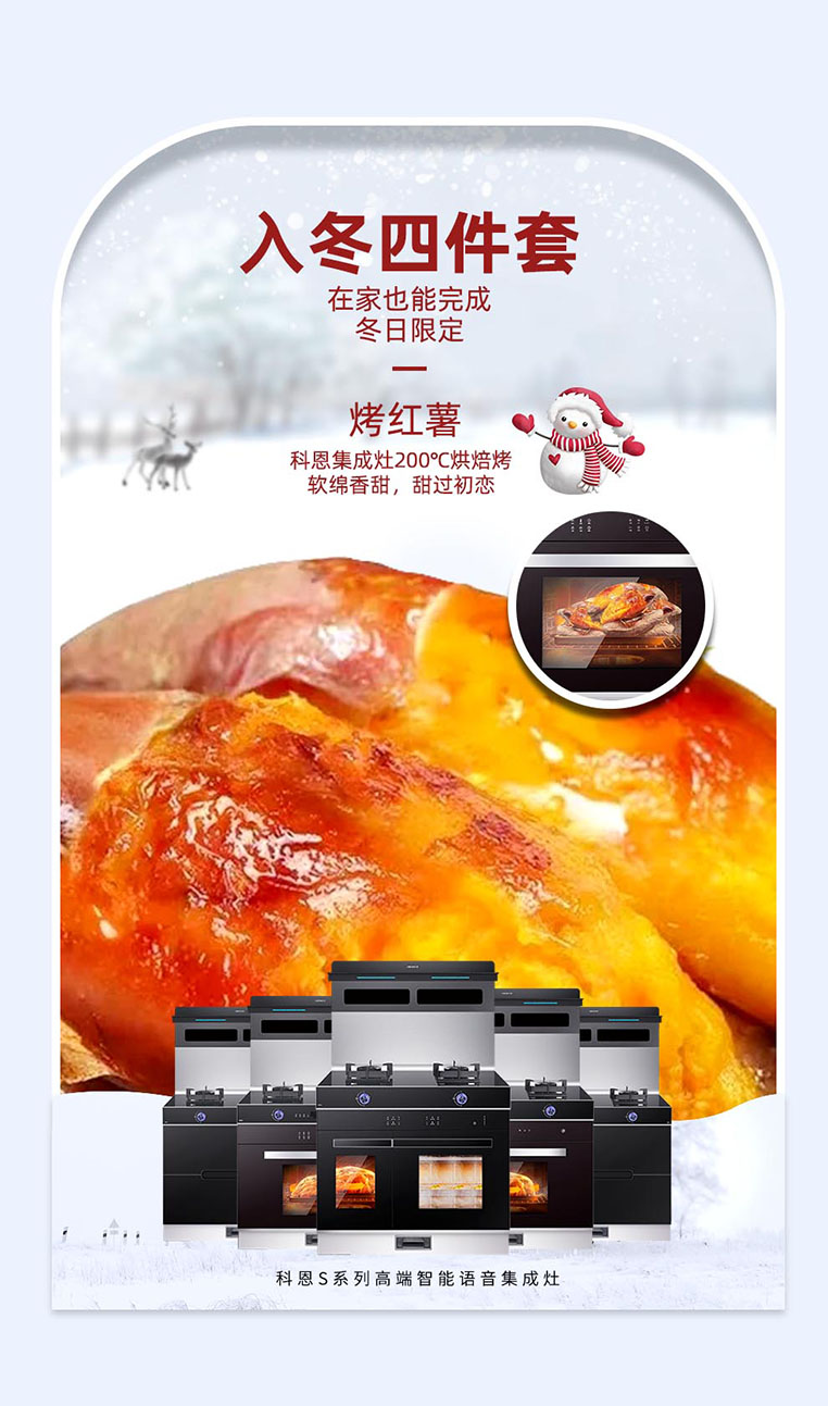 從清晨的朦朧霧氣,到早早降臨的夜幕,偶爾伴著寒氣的風,正在提醒人們天氣已經漸漸轉涼。隨氣溫的驟降,我們開始貪戀熱騰騰的食物,“軟糯的烤紅薯、香甜的糖炒栗子、酸甜的冰糖葫蘆、濃郁的奶茶”,被稱之為“入冬四件套”的話題被沖上了熱搜,來自冬日的儀式感,我們也不能少呀,集成灶十大品牌、廚電行業(yè)十大品牌科恩集成灶給你們安排上~
