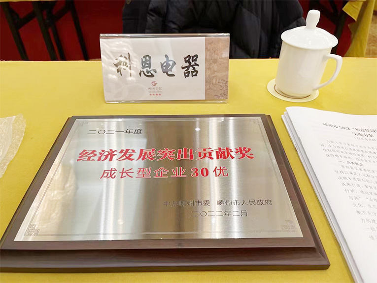 浙江科恩電器有限公司受邀出席會議,并斬獲嵊州市2021年度“經濟發展突出貢獻獎——成長型企業30優”獎項,虎年伊始,“虎”力全開!此項重磅大獎助力科恩實現虎年開門紅,奏響2022開年最強音。