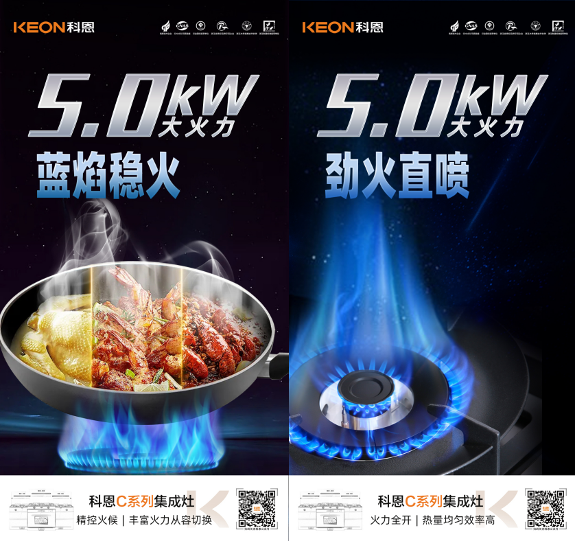 科恩C系列集成灶,5.0kW肆意爆炒,美味紛至沓來!
