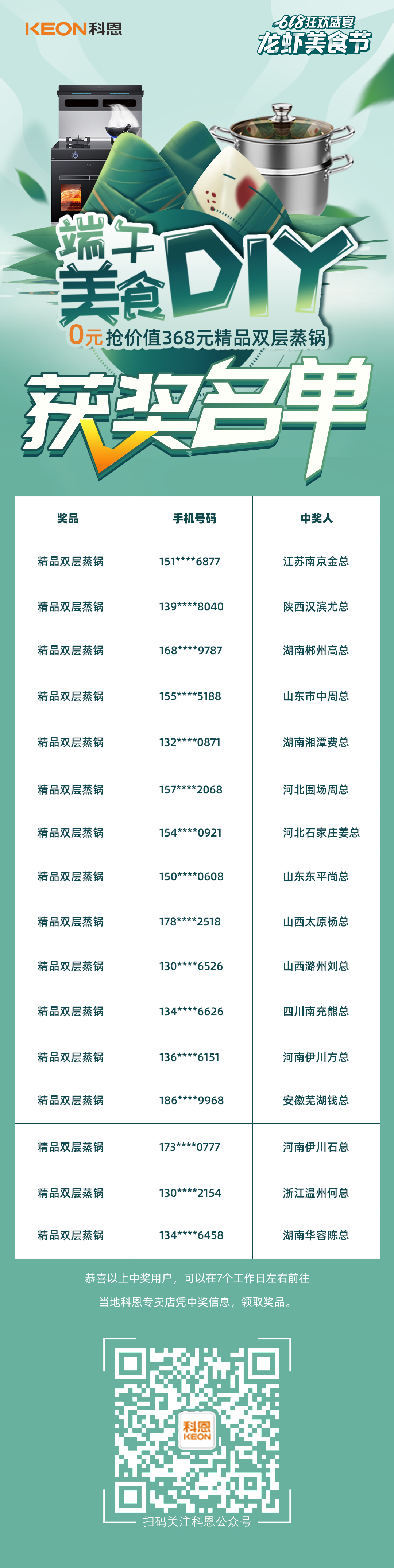 什么?你竟然錯(cuò)過(guò)了這場(chǎng)精彩紛呈的現(xiàn)場(chǎng)直播?麻辣小龍蝦粽子也太厲害了吧!還有0元搶好禮和1元特權(quán)卡,這種薅羊毛機(jī)會(huì)下次一定不能錯(cuò)過(guò)!除了端午美食DIY——學(xué)做小龍蝦粽子之外,現(xiàn)場(chǎng)還有0元搶價(jià)值368元精品雙層蒸鍋,話不多說(shuō),先上獲獎(jiǎng)名單,看看你中獎(jiǎng)了沒(méi)?