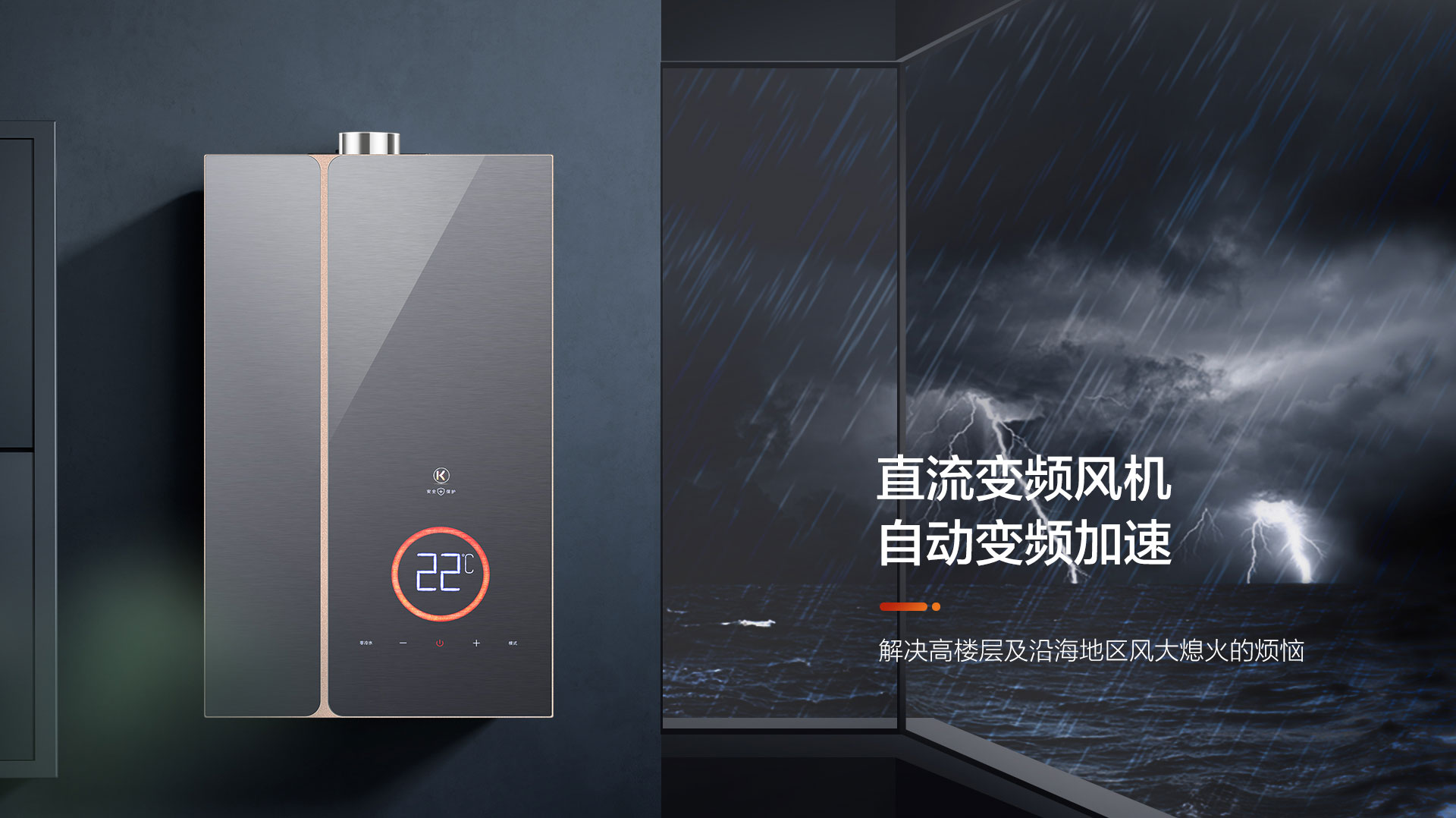 高精度比例閥、雙電磁閥+智能四分段比例控制燃燒技術,可根據水流量和水溫精準匹配火力大小,出水恒溫,暢享舒適沐浴。