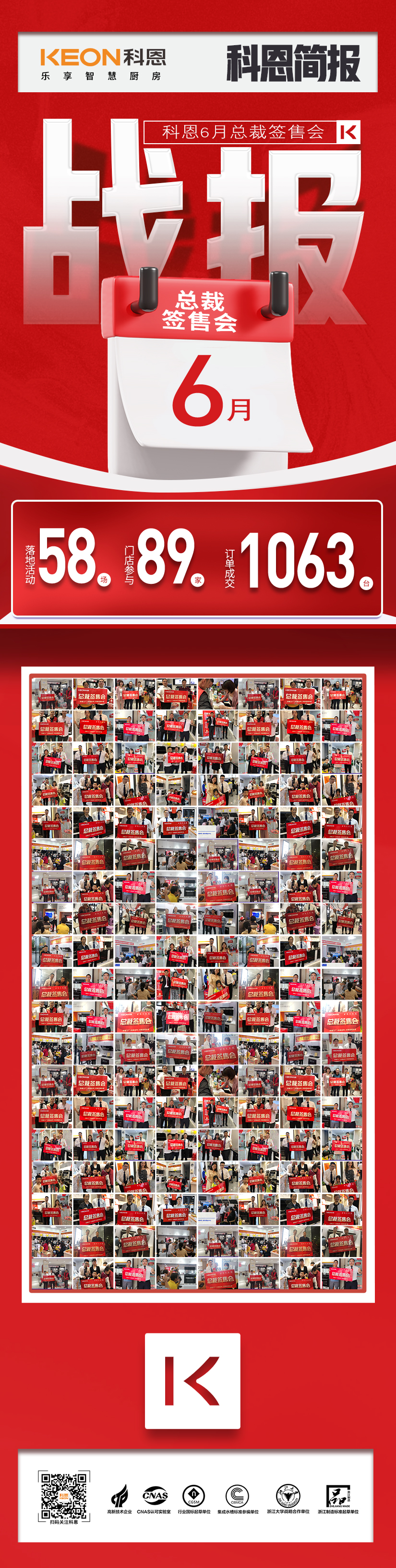 受大環(huán)境影響,整個市場格局呈低位運行,但淡季往往承載著更多的機會與潛力,誰能充分做活淡季市場,誰就能在旺季收割更大市場,淡季不淡,旺季更旺!沒有淡季的市場,只有淡季的思想,盛夏六月,科恩人不畏酷暑,奮勇爭先,一如既往奮斗在市場第一線:熱火朝天的終端幫扶、落地爆破,花樣繁多的全渠道聯(lián)誼、雙線促銷活動,豐富多彩的美食拓客、社交新零售活動,獨領(lǐng)行業(yè)風(fēng)騷,成為今夏廚電市場最亮風(fēng)景線!