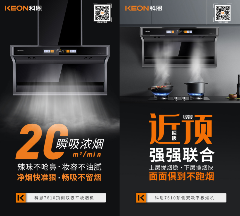 科恩7610頂側雙吸體感煙機,高效凈煙無所懼!