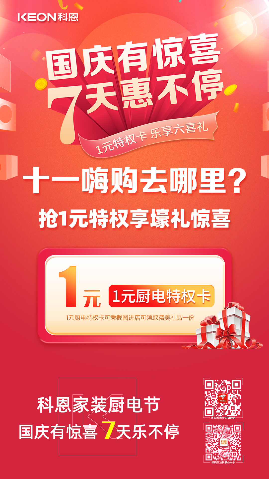 1元瘋搶,給力國慶,科恩家裝廚電節(jié)國慶專輯——國慶有驚喜,7天惠不停正火熱進(jìn)行中,力度空前,更有豪華大禮包驚喜贈送,全民鉅惠,就在科恩家裝廚電節(jié),更多鉅惠活動請詳詢科恩各大門店!
