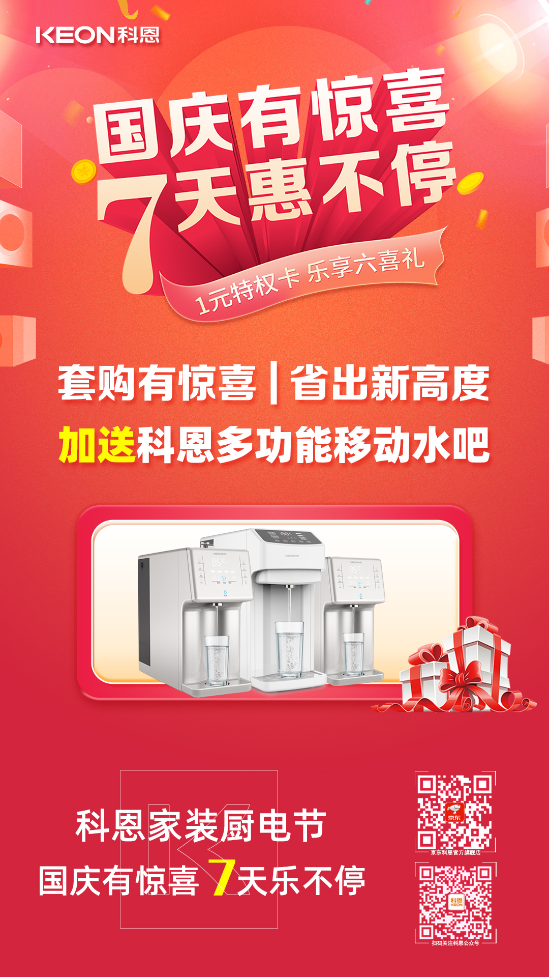 國慶價·提前享,科恩家裝廚電節(jié)之國慶專輯——國慶有驚喜,7天惠不停,科恩集成灶帶你嗨購黃金周!