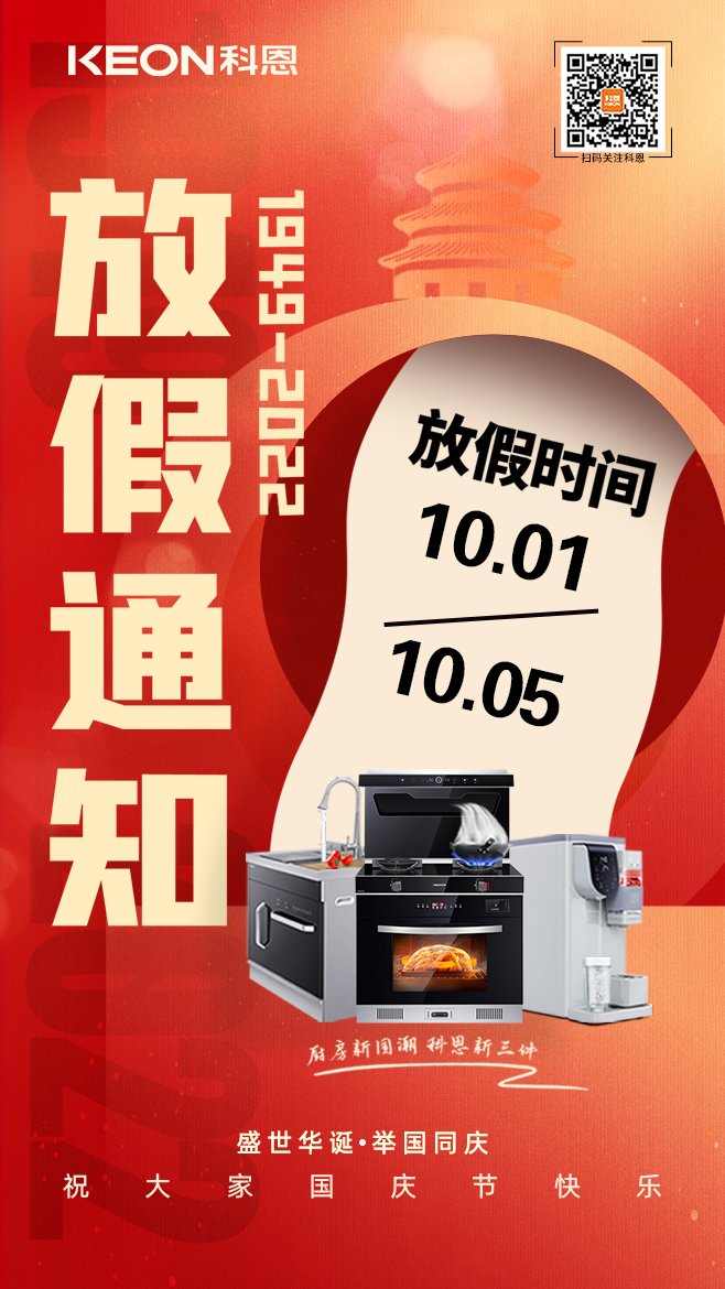 歡度國(guó)慶,共襄盛舉!科恩集成灶放假通知!