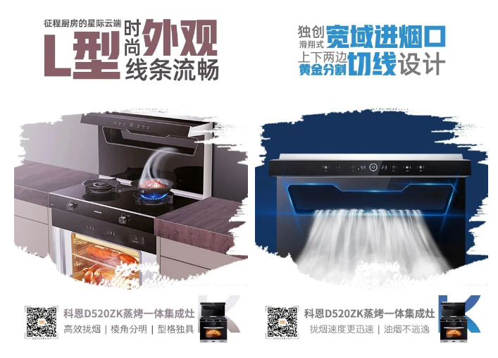 在廚電智能化這一趨勢推動下,科恩集成灶深諳智慧廚電內涵即“以人為本”,以用戶需求度、體驗感、使用感為第一要素,將智能化、套系化、集成化和便捷化完美融入到全系產品中,聚焦“廚房新國潮,科恩新三件”組合輸出,傾力打造集成智慧廚房典范!D520ZK作為獨具匠心的集成烹飪中心,X2作為高度集成、有容乃大的集成凈洗中心,強強聯合,完美解決了烹飪+凈洗兩大廚房難題,重構廚房生活場景,優化操作動線,提高烹飪效率,為用戶帶來了更為便捷優質的廚房生活體驗!
