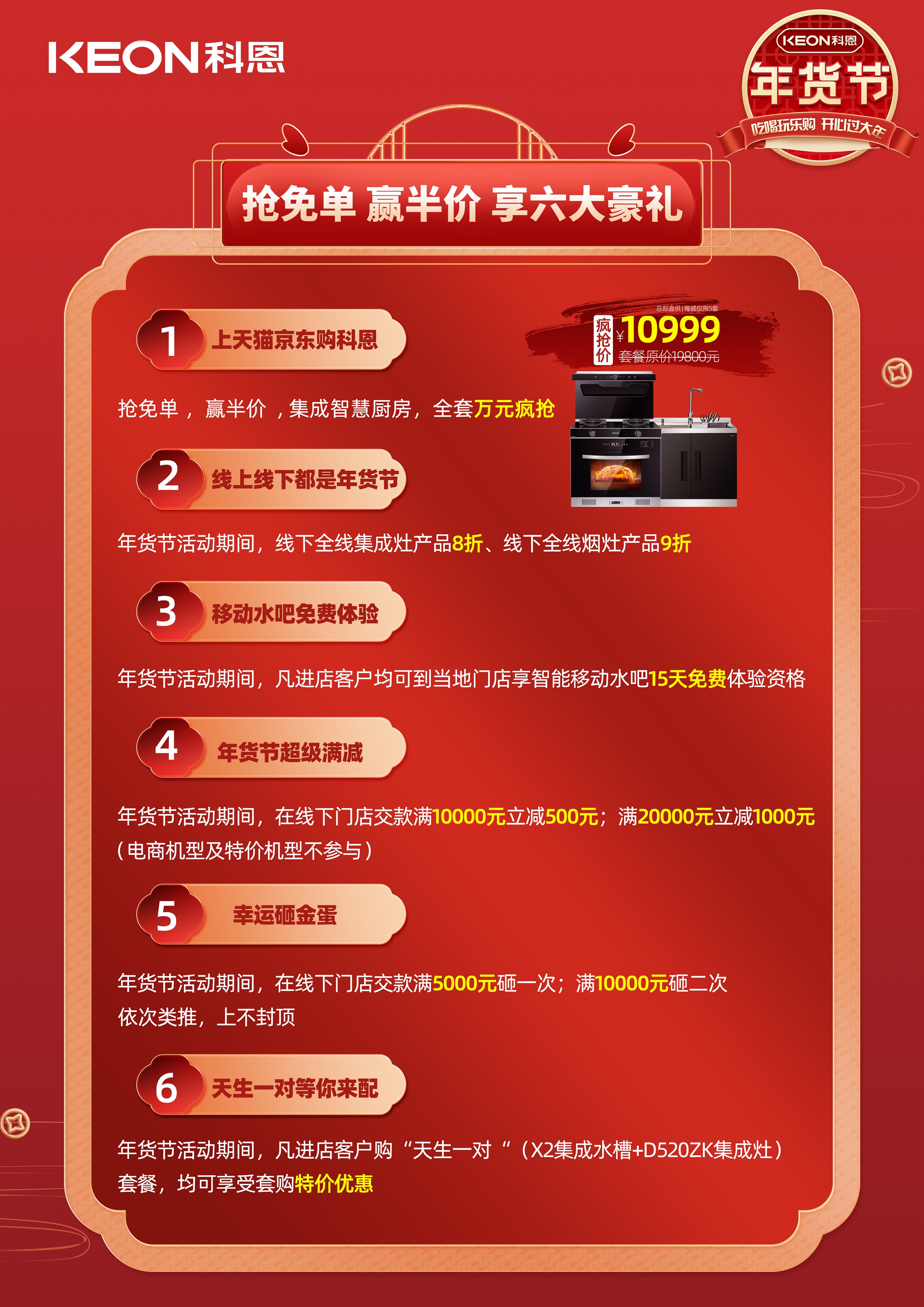 科恩年貨節(jié)火熱上線,精彩不容錯過,更多廚電年貨選擇,請詳詢各科恩專賣店!