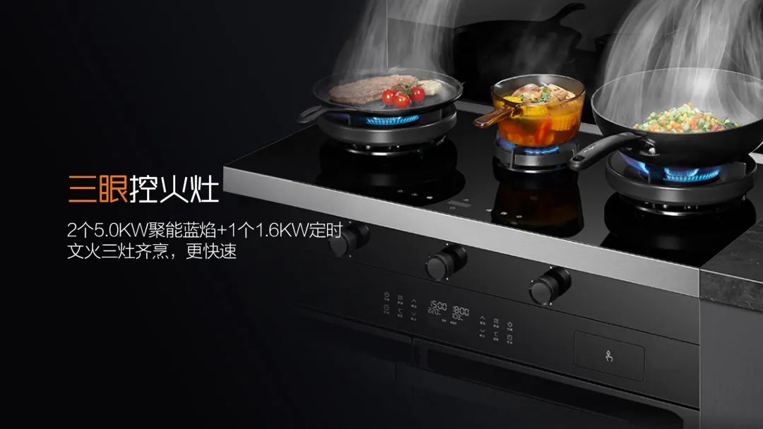 科恩A3系列獨特的三眼控火灶設置,可完美適配三代同堂家庭,25.0KW聚能藍焰+11.6KW定時文火,同時滿足爆炒和煮輔食的需求。且1.6KW小火慢煮,讓輔食擁有自己的專屬火力,無需費力調(diào)整,開啟就是最佳火力。