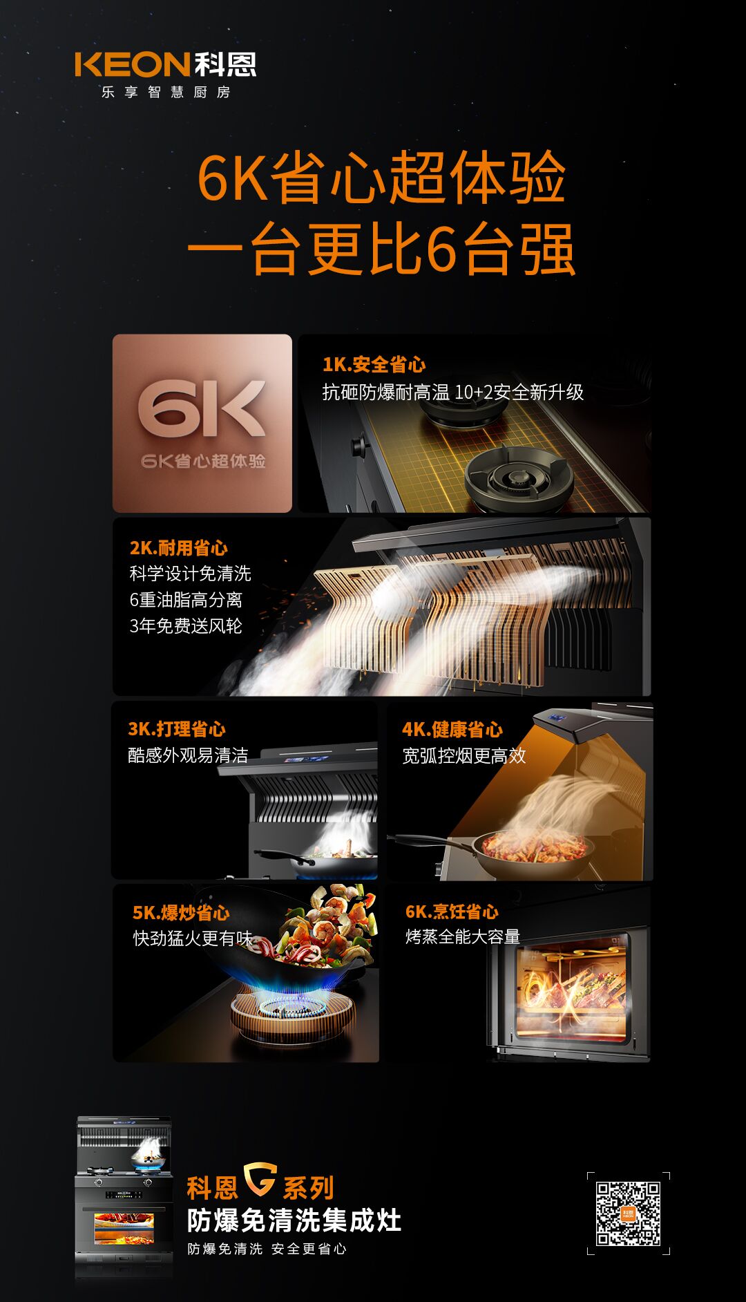 怎么樣的集成灶才能更完美匹配用戶的需求。2023年,科恩研發(fā)了G系列防爆免清洗集成灶,6K省心超體驗,完美適配消費(fèi)者需求!