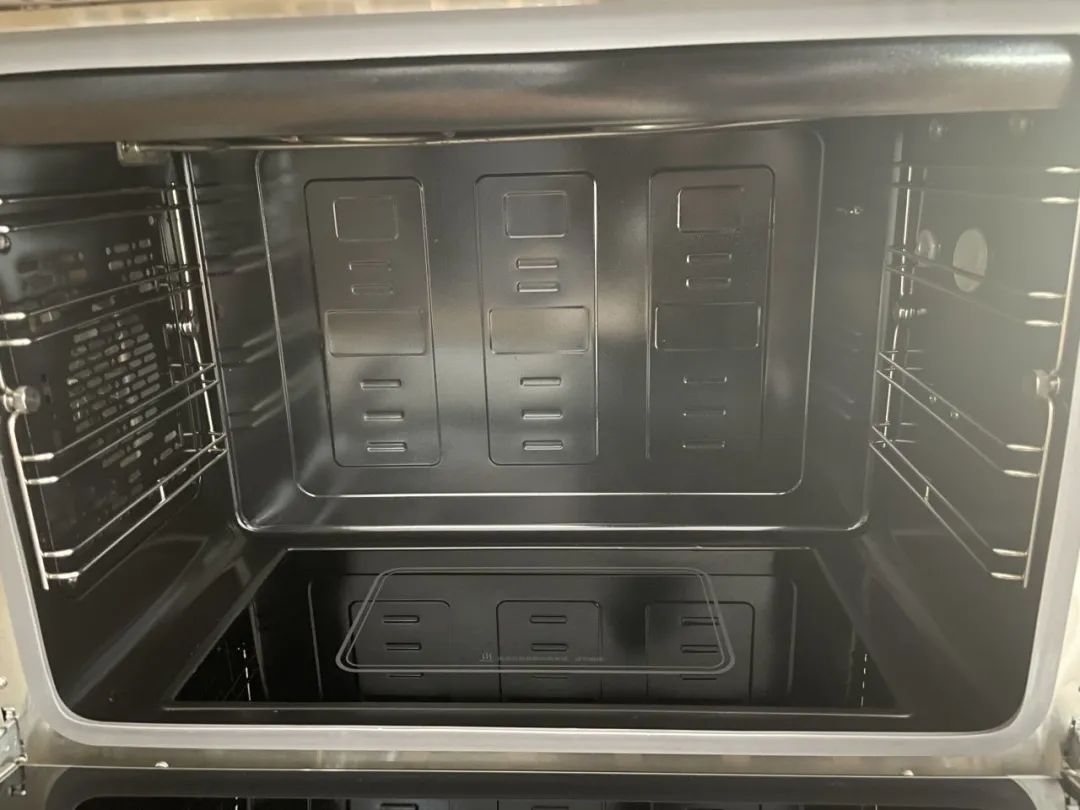 蒸烤箱內部采用一體拉伸搪瓷內膽,不易積食物殘渣、水垢和油漬,清理更便捷。