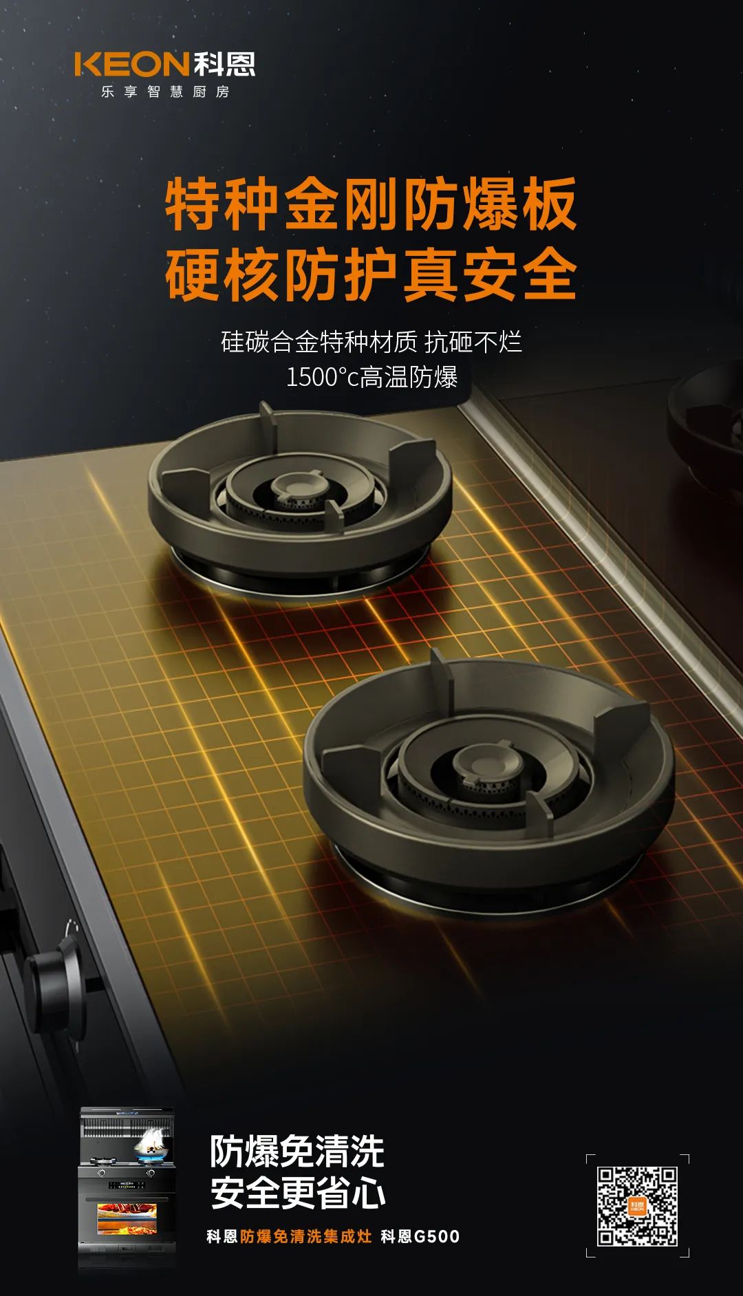 從用戶實(shí)際需求出發(fā),2023年科恩將近70%的用戶最為看重的安全、易清潔作為研發(fā)重點(diǎn)方向,研發(fā)了G系列防爆免清洗集成灶。經(jīng)過漫長的上市前檢測(cè)、測(cè)試等待,科恩G500防爆免清洗集成灶于昨日,隆重上市。