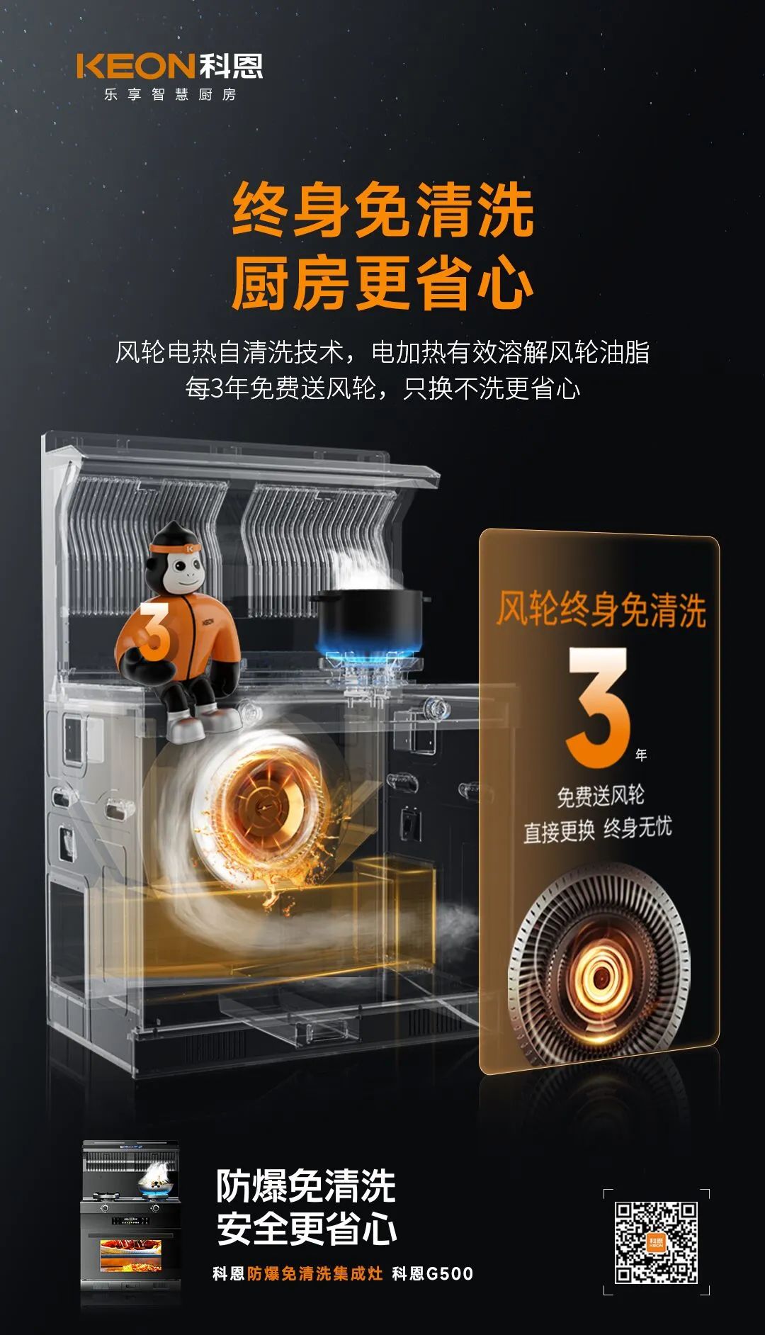 終身免清洗不是一句口號(hào),而是一個(gè)行動(dòng)!科恩每3年將免費(fèi)提供風(fēng)輪更換服務(wù),徹底告別清洗,真正實(shí)現(xiàn)終身免清洗,廚房更省心!