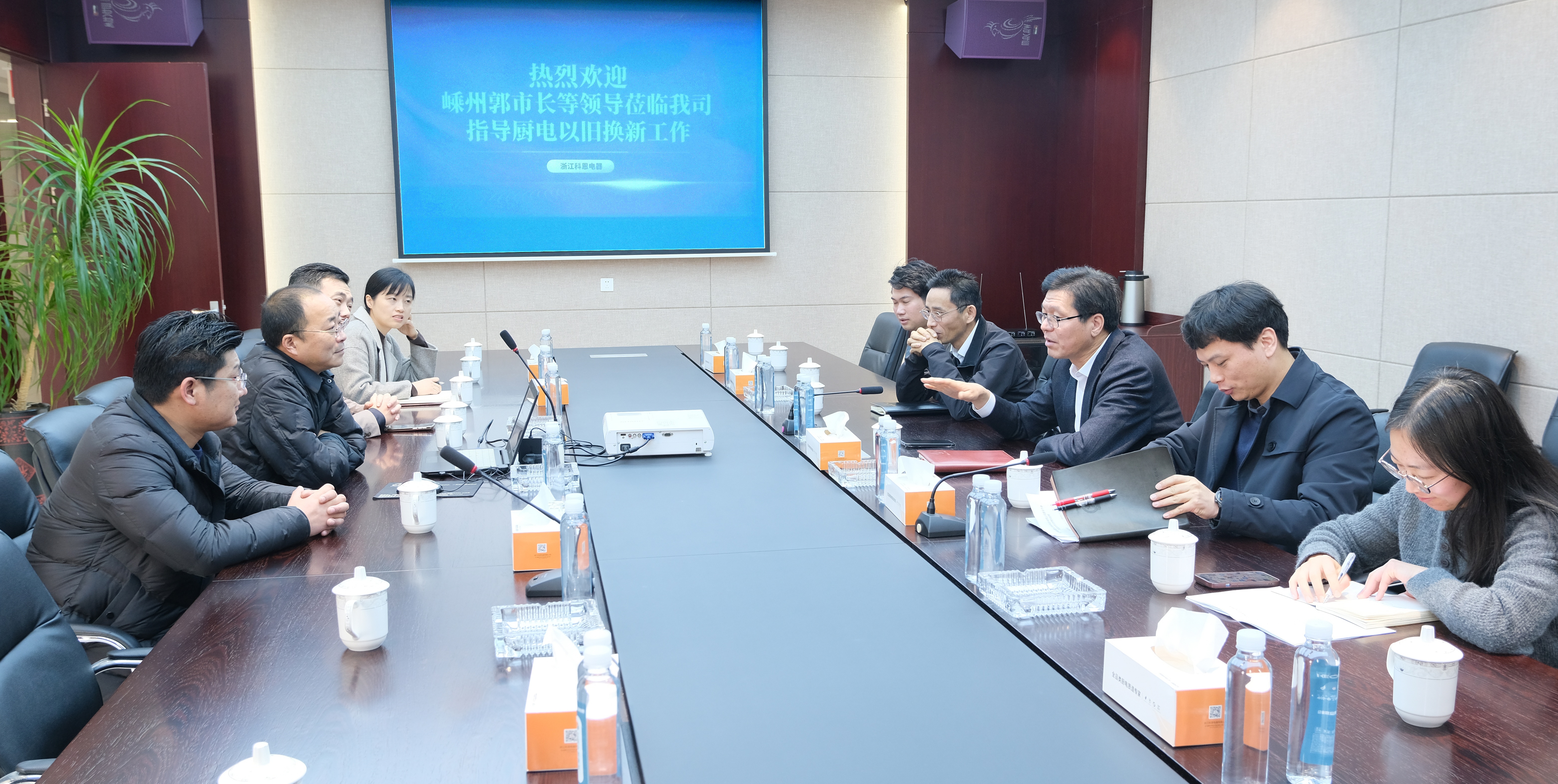3月18日上午,嵊州市副市長郭偉鋒,商務局相關領導,市府辦、浦口街道負責人一行蒞臨科恩電器調研并開展座談會,指導廚電“以舊換新”工作,科恩公司管理層領導出席會議。
