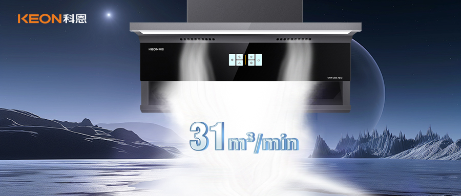 31m³/min颶風吸力,瞬間清場爆炒戰場,2.5cm冰川灰鑲邊,輕薄顏值擔當,嵌入現代化廚房美學畫卷,科恩煙機7810,顏值實力雙在線,打造美凈廚房新空間。揮手掀起凈煙革命,告別油膩,清爽下廚。全景天幕燈照亮料理臺,三檔風力輕松應對各種烹飪需求,以愛之名,打造自然清新家,守護健康每一刻。