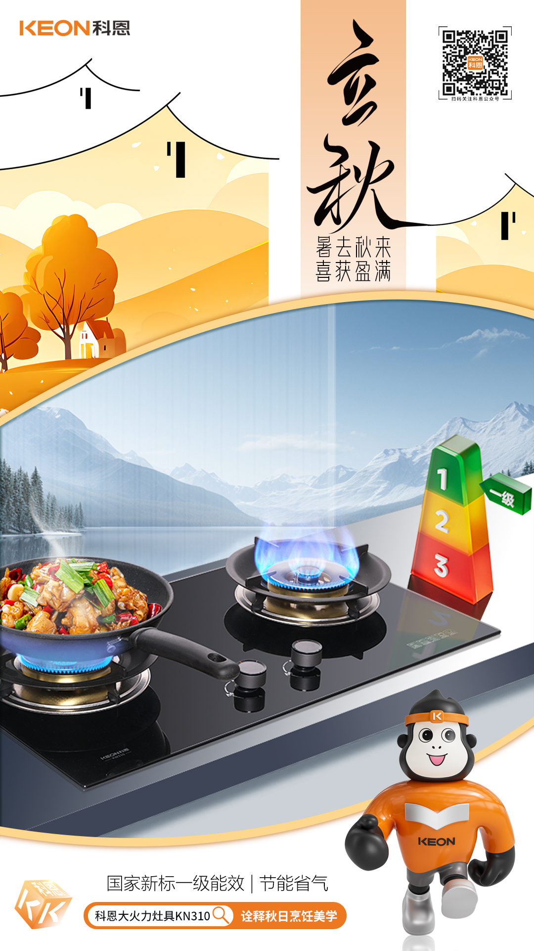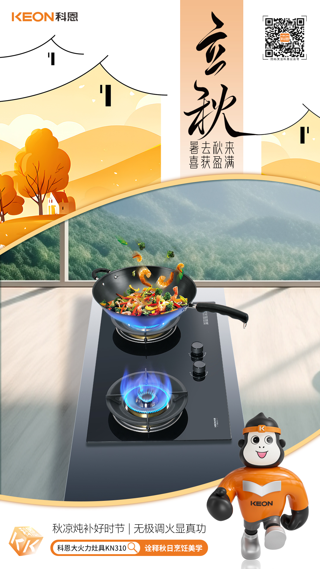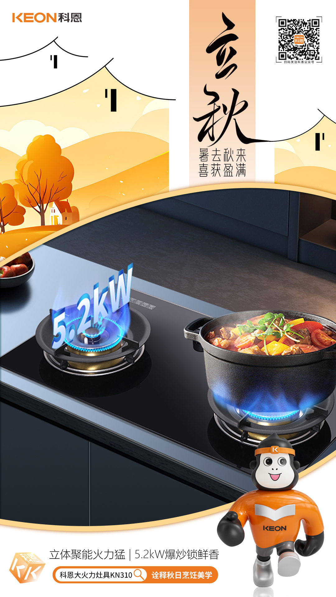 立秋煙火起,灶上煥新時。科恩匠心推出猛火灶具KN310,以“火候藝術”重塑廚房烹飪學,讓每一味秋鮮都恰到好處,鎖住時節的醇厚與溫情立秋貼秋膘,灶具煥新正當時
