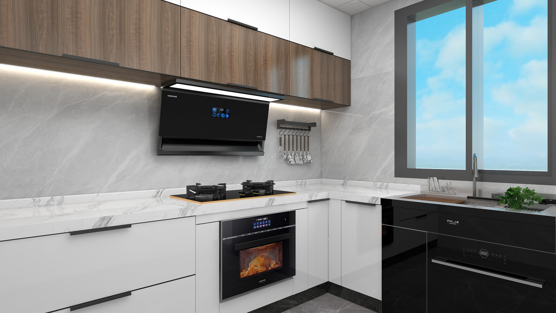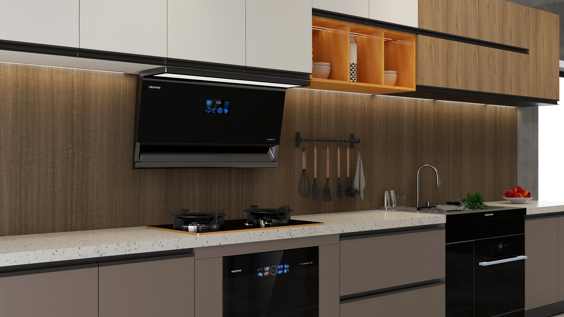 7270 煙機采用幻影黑面板,磨砂啞光質感細膩柔和,不僅抗指紋耐刮擦,始終保持光潔如新,還能完美適配多種廚房裝修風格,為廚房增添時尚格調。2.5cm 纖薄機身,與櫥柜邊緣齊平,告別傳統煙機的笨重感,釋放更多空間,讓你自在顛勺,盡情享受烹飪樂趣,再也不用擔心碰頭。