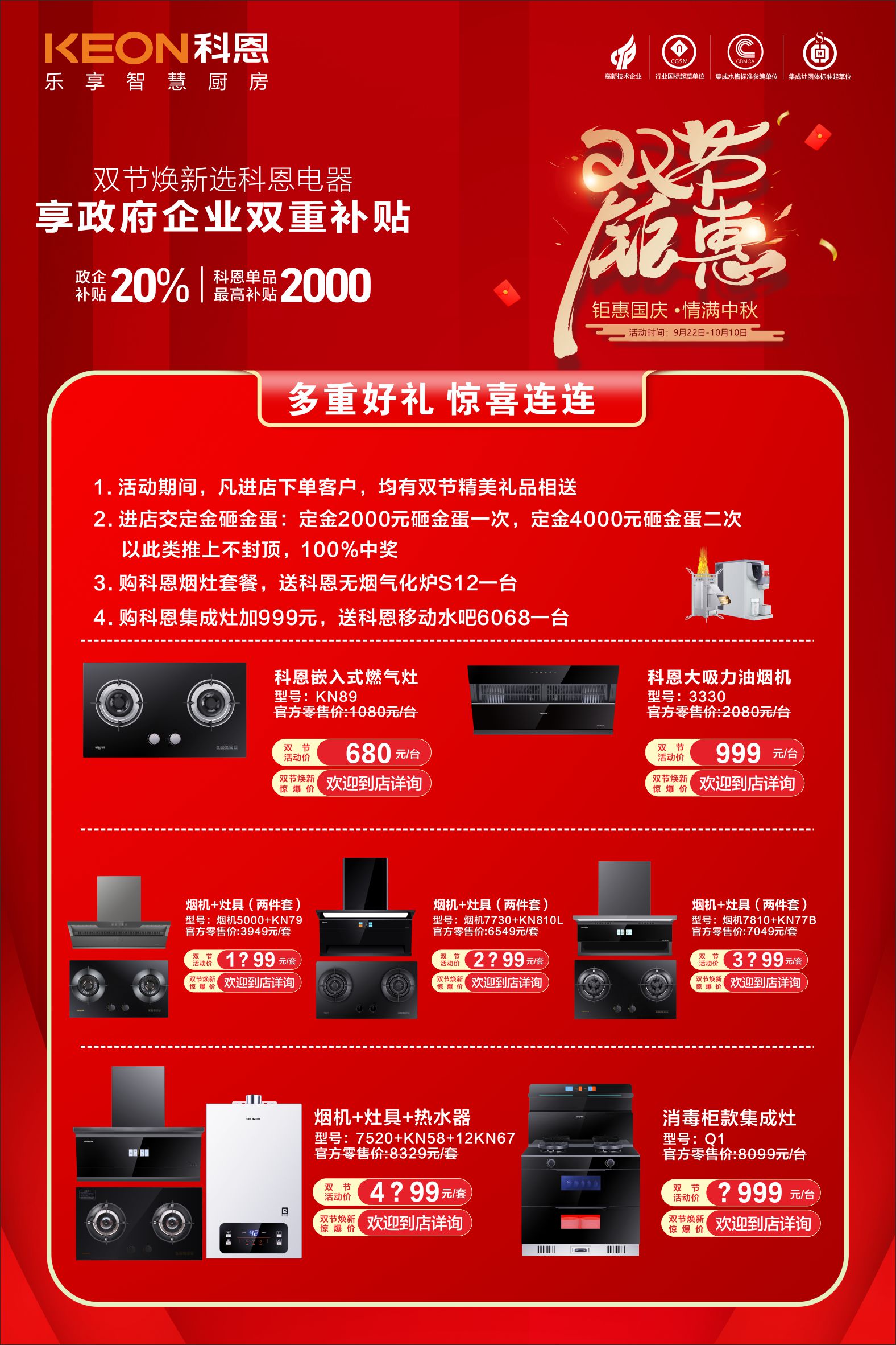 雙節(jié)同慶,廚電煥新黃金季,國慶中秋喜相逢,科恩廚電以“鉅惠國慶,情滿中秋”為主題,于9月22日-10月10日開啟限時狂歡盛典。值此家國同慶之際,雙節(jié)狂歡盛典火熱開啟,讓科技與溫情相伴,讓品質(zhì)生活觸手可及!