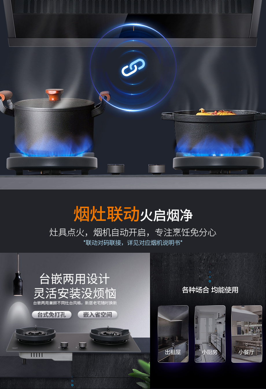 輕松換裝,適配老房廚房。小板灶設計多尺寸適配,輕松換裝不折騰,亞膜水霧鋼化玻璃臺面,油砂納米工藝防粘,湯汁滴落一擦即凈,清潔無憂,懶人也愛下廚。