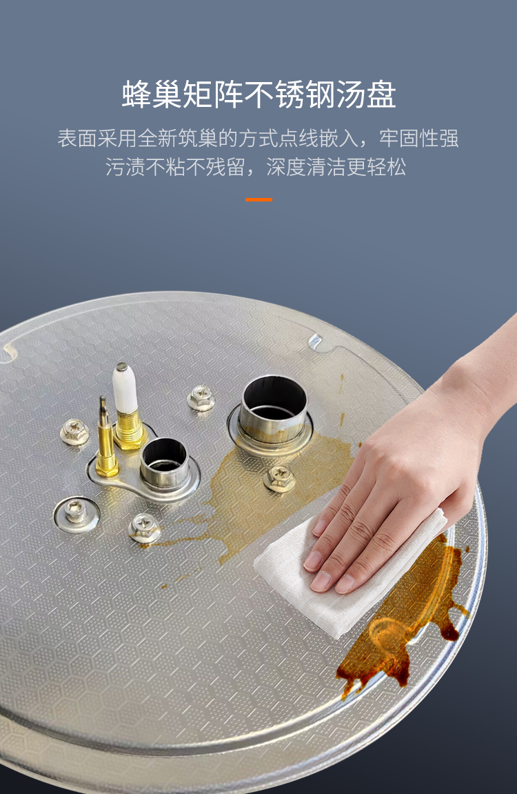 湯汁濺落,最是惱人。蜂巢矩陣工藝筑形,點線嵌入更見牢固,污漬難粘更易清理深度清潔無需死角,廚房顏值與潔凈雙雙在線自適應底,換裝便捷。