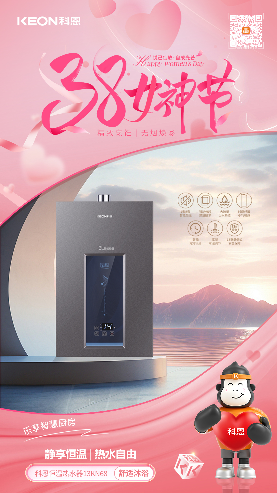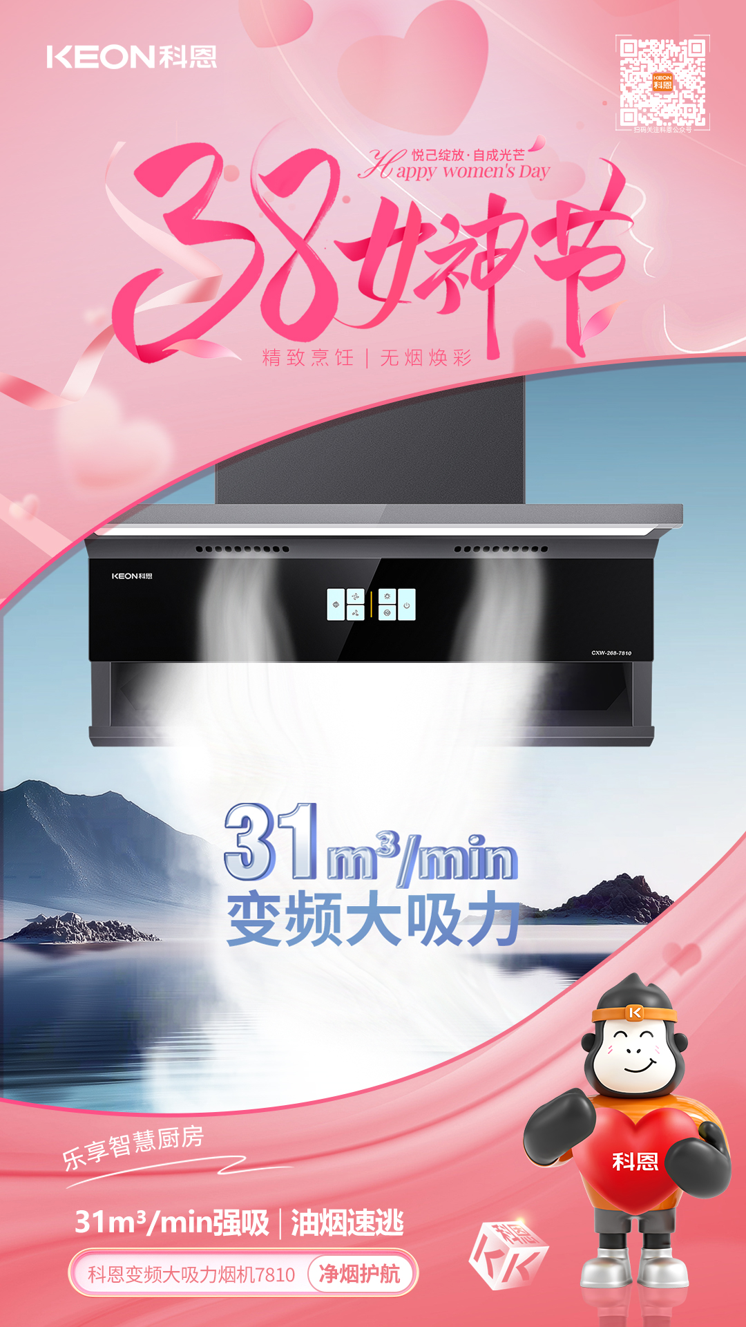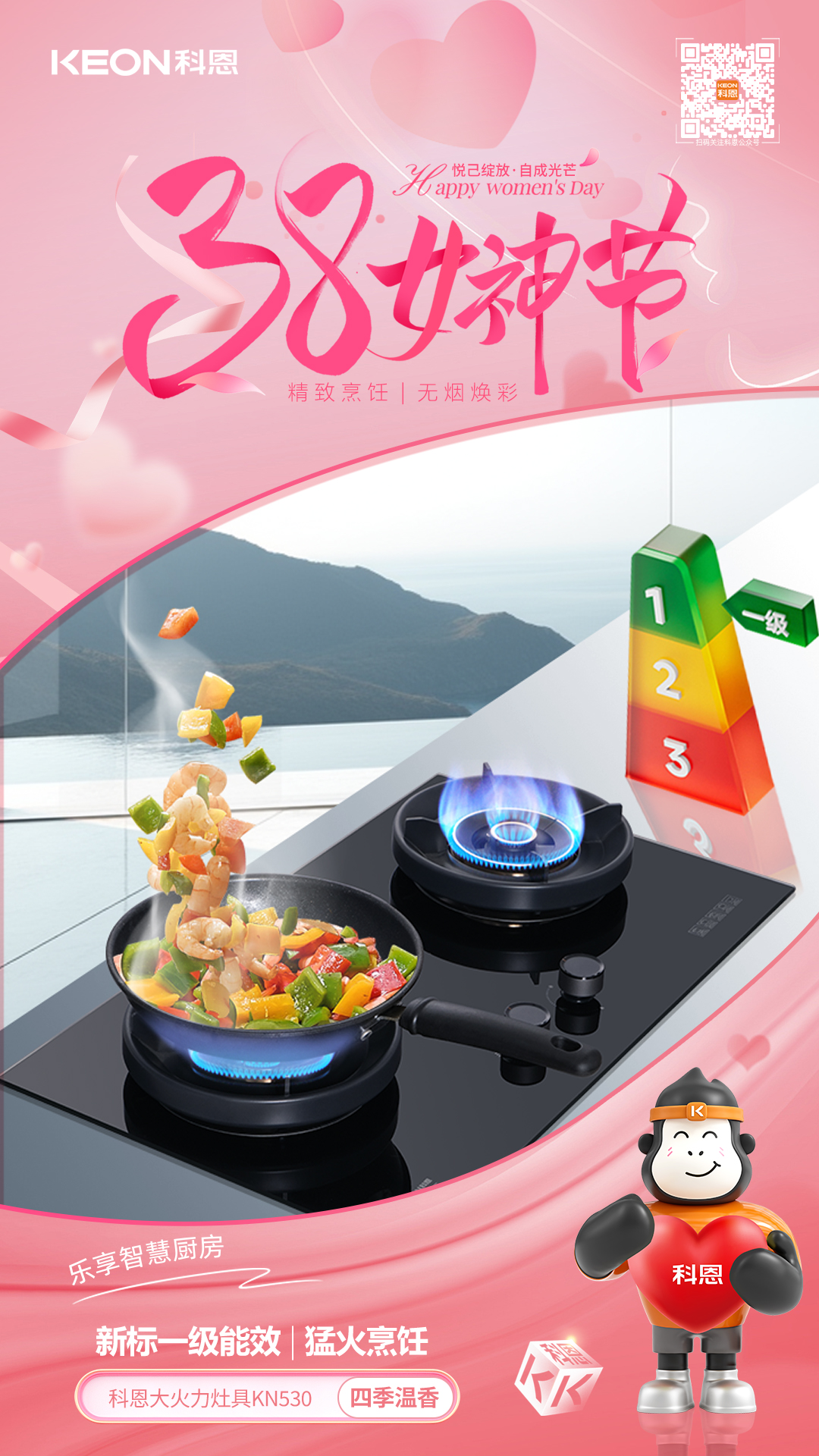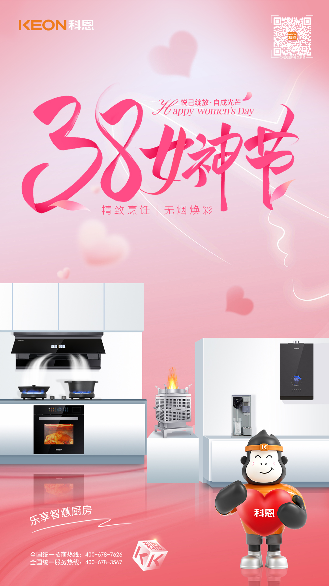 從凈煙護航到火候隨心從恒溫守護到安全無憂科恩以科技為翼,賦能女性品質生活。不定義她的角色,只守護她的熱愛,不辜負她的付出,只給予貼心呵護,這個婦女節,讓科恩與你一起讓廚房成為從容主場,讓生活滿是溫柔光芒!愿每一位女性,都能在煙火氣中活成自己喜歡的模樣,自在如風,優雅綻放。