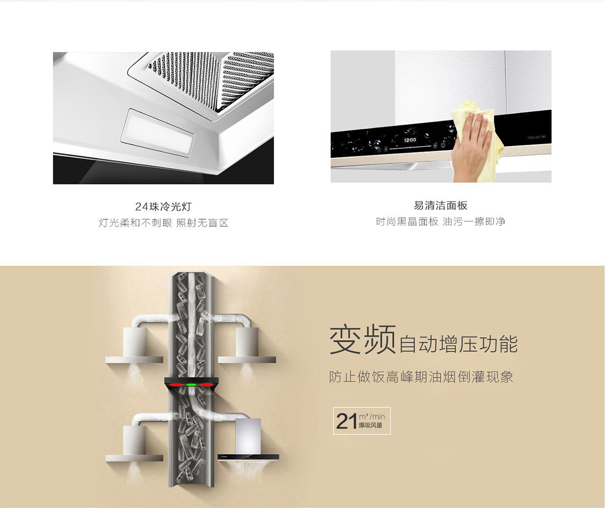 變頻自動增壓功能,防止做飯高峰期油煙倒灌現象。