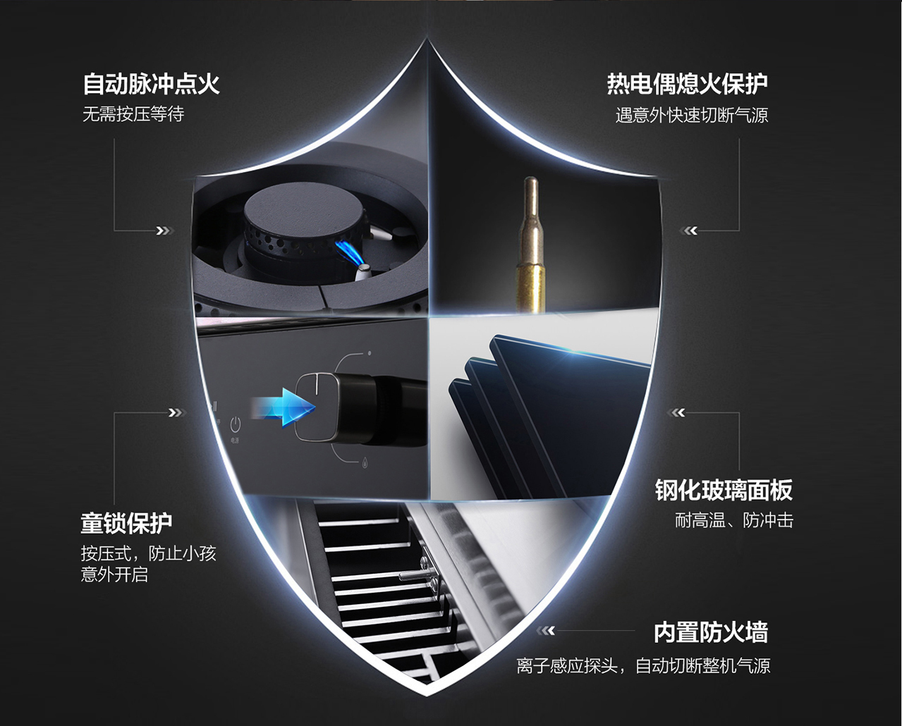 8MM加厚黑晶防爆鋼化玻璃灶臺(tái)面板,外觀時(shí)尚,易潔易打理。