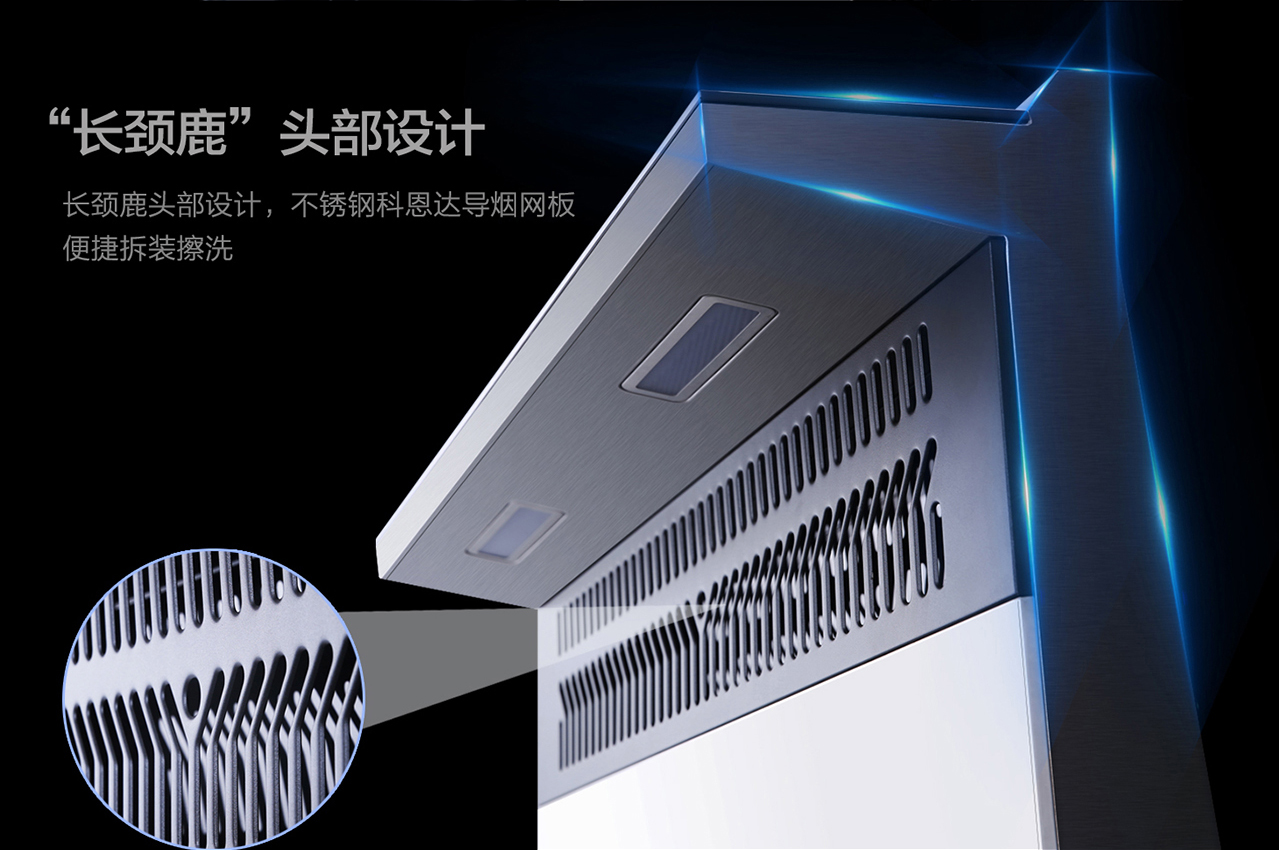 搭載可提拉式科恩達(dá)304不銹鋼導(dǎo)煙網(wǎng)板,拆卸方便。