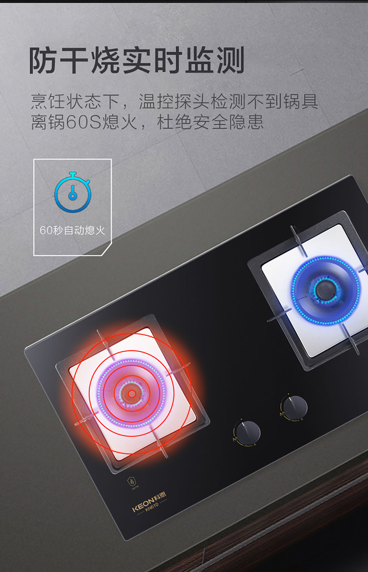左爐頭帶防干燒裝置功能,防止意外發生