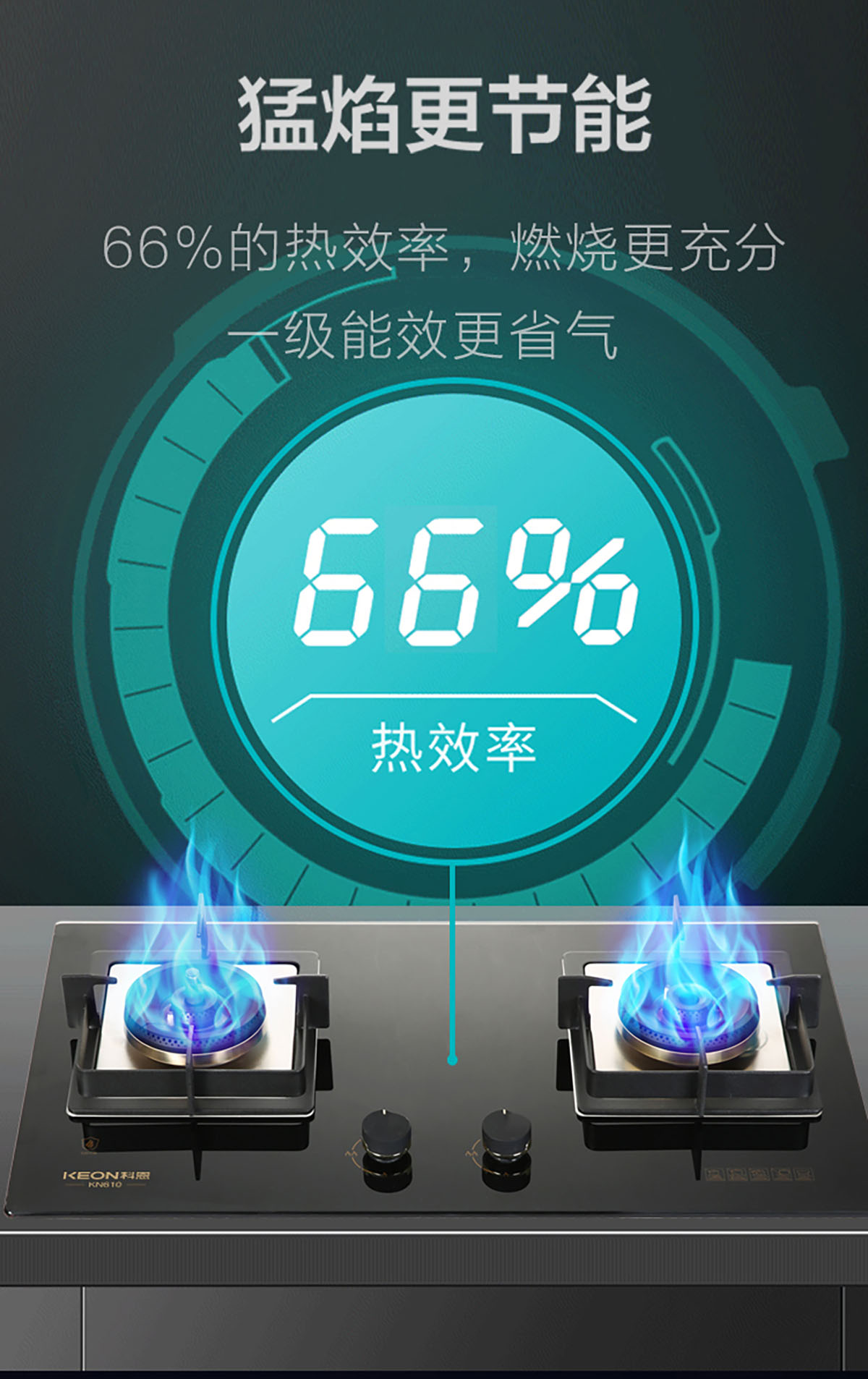 猛焰更節能,66%的熱效率,燃燒更充分,一級能效更省氣