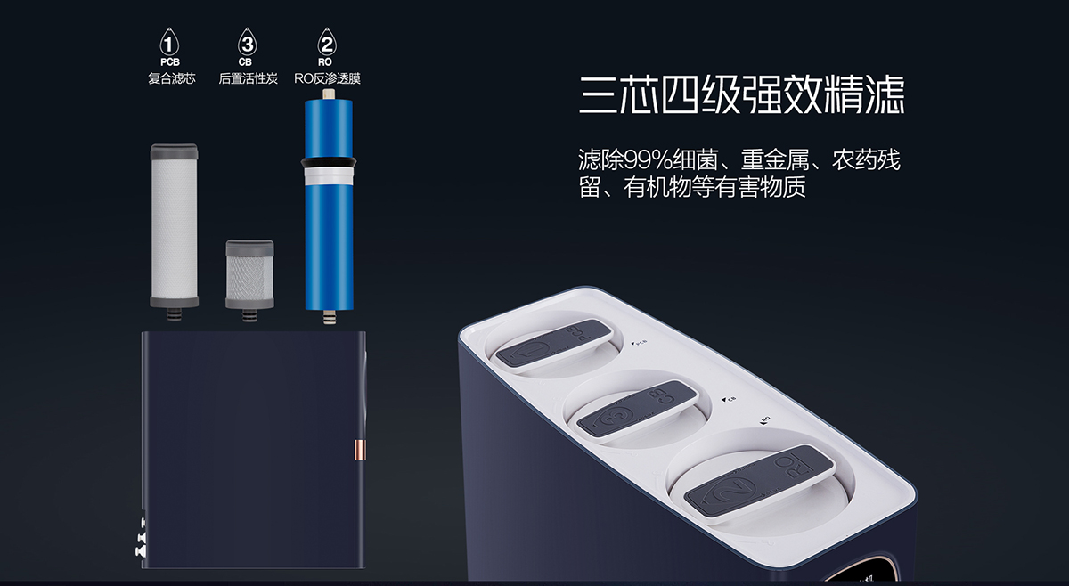• 三芯四級(jí)強(qiáng)效精濾,濾除99%細(xì)菌重金屬