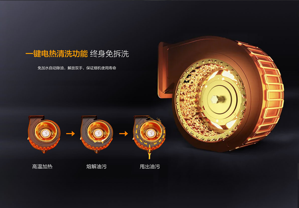 一鍵電熱智清洗,終身免拆洗,葉輪風柜壁自動除油,解放雙手
