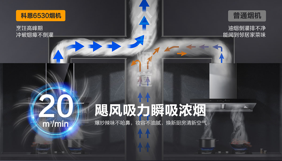 20m3/min颶風吸力,爆炒不嗆鼻,煥新廚房更潔凈