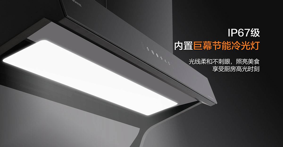 IP67級內(nèi)置巨幕節(jié)能冷光燈,光線柔和,馨享廚房高光時刻