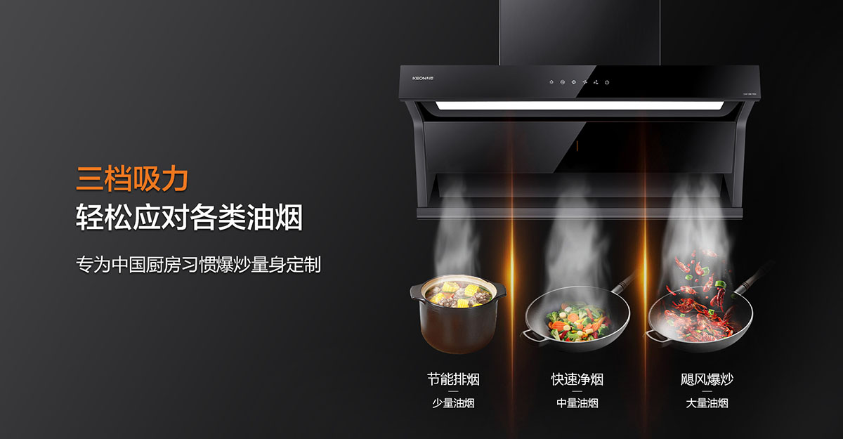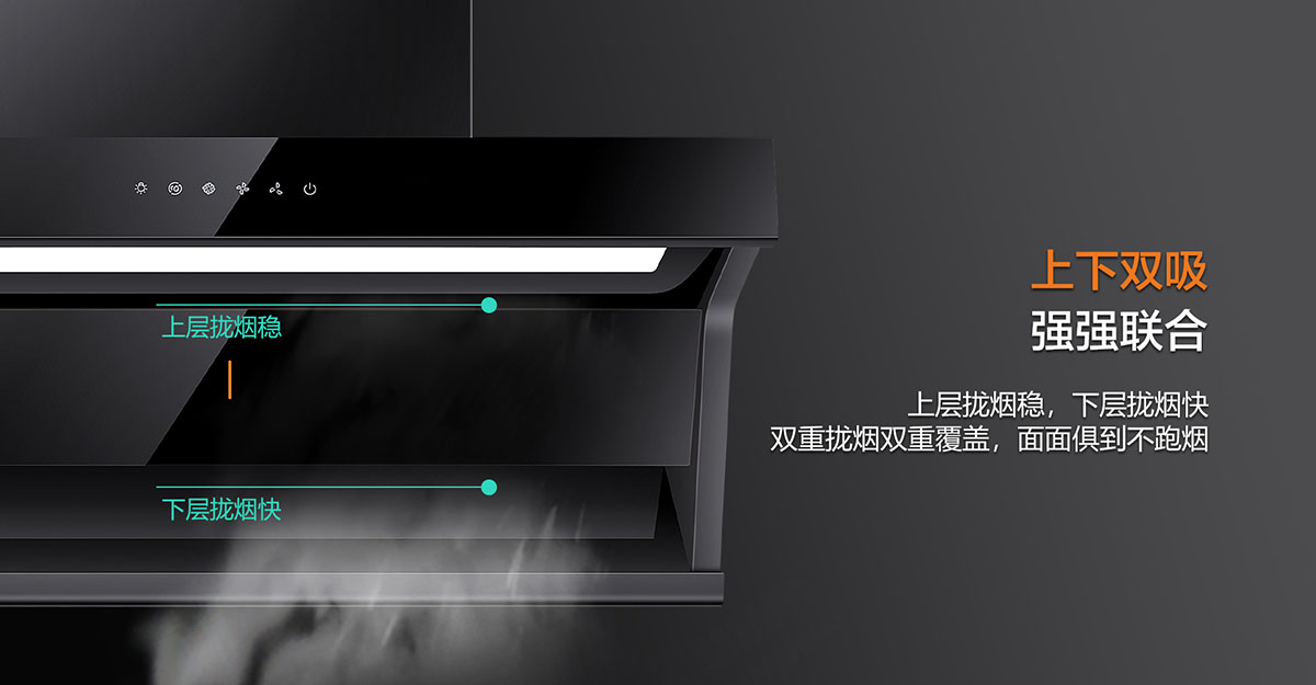 上下雙吸,下強吸,上快攏,強強聯(lián)合,油煙0逃逸