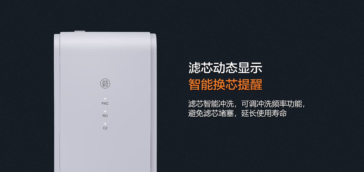 • 濾芯智能沖洗,人性化智能換芯提醒