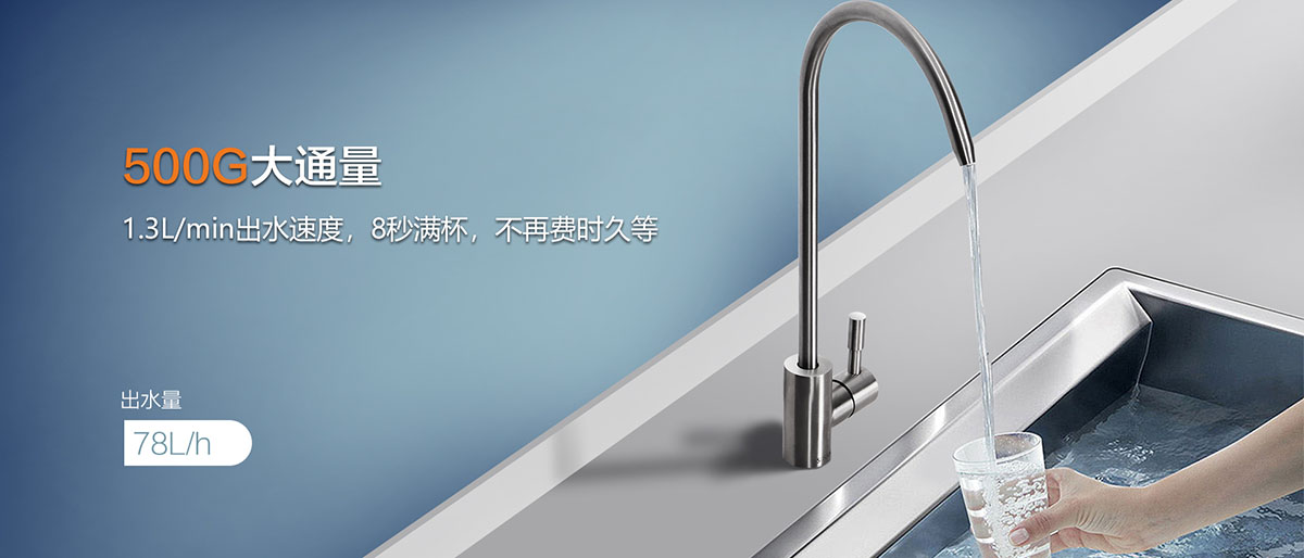 • 500G大通量,1.3L/min出水速度