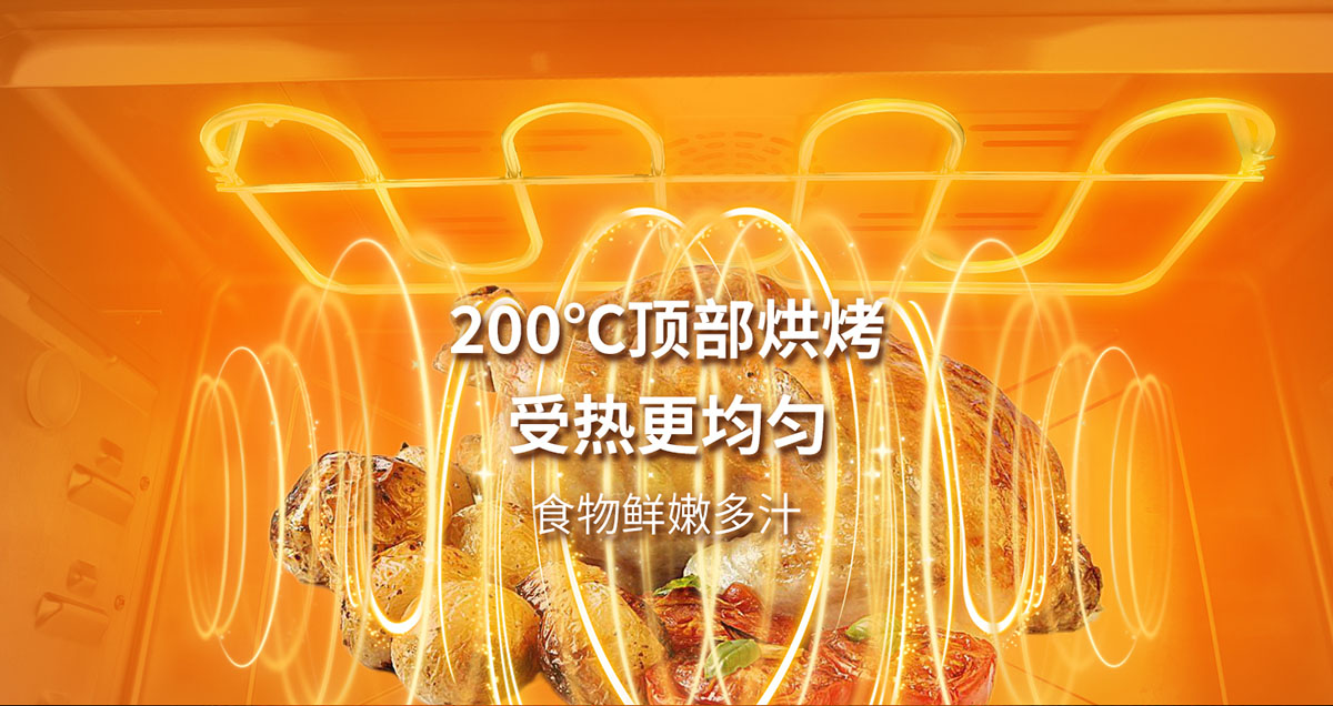 200℃頂部烘烤,受熱更均勻,食物鮮嫩多汁