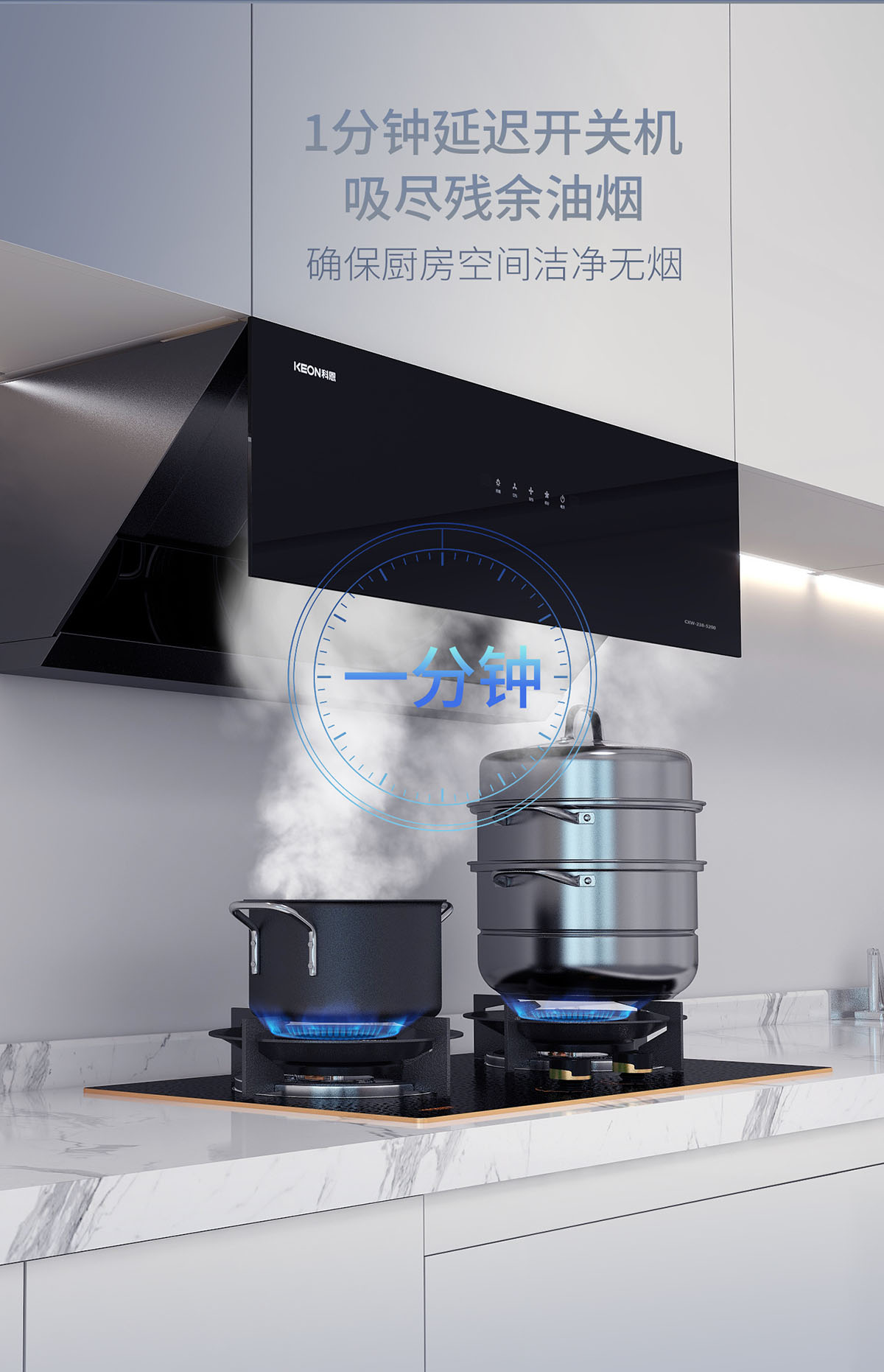 • 1分鐘延時(shí)關(guān)機(jī),吸盡烹后殘余油煙