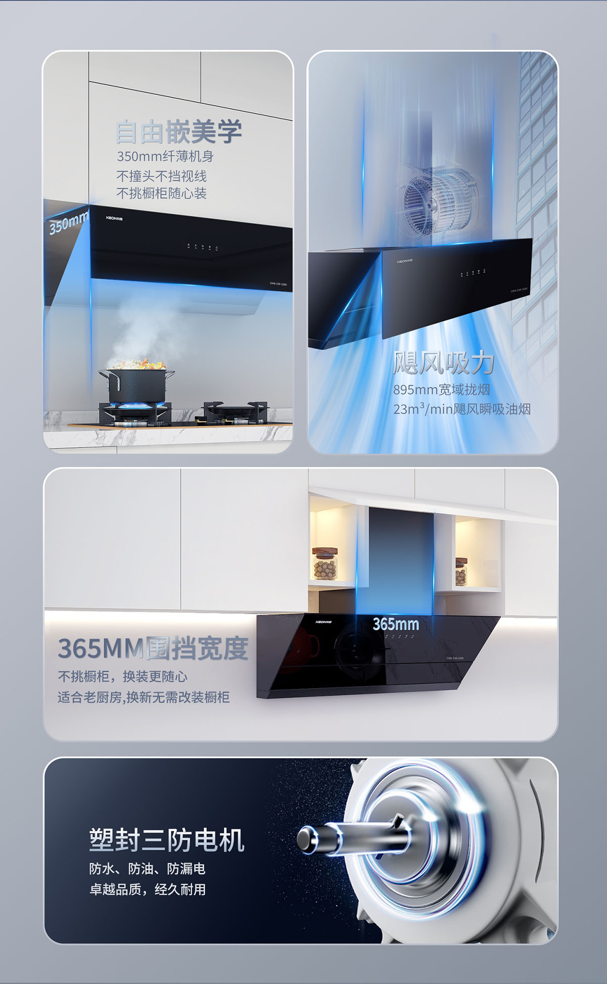 • 23m³/min颶風(fēng)吸力,瞬吸油煙,打造無煙廚房