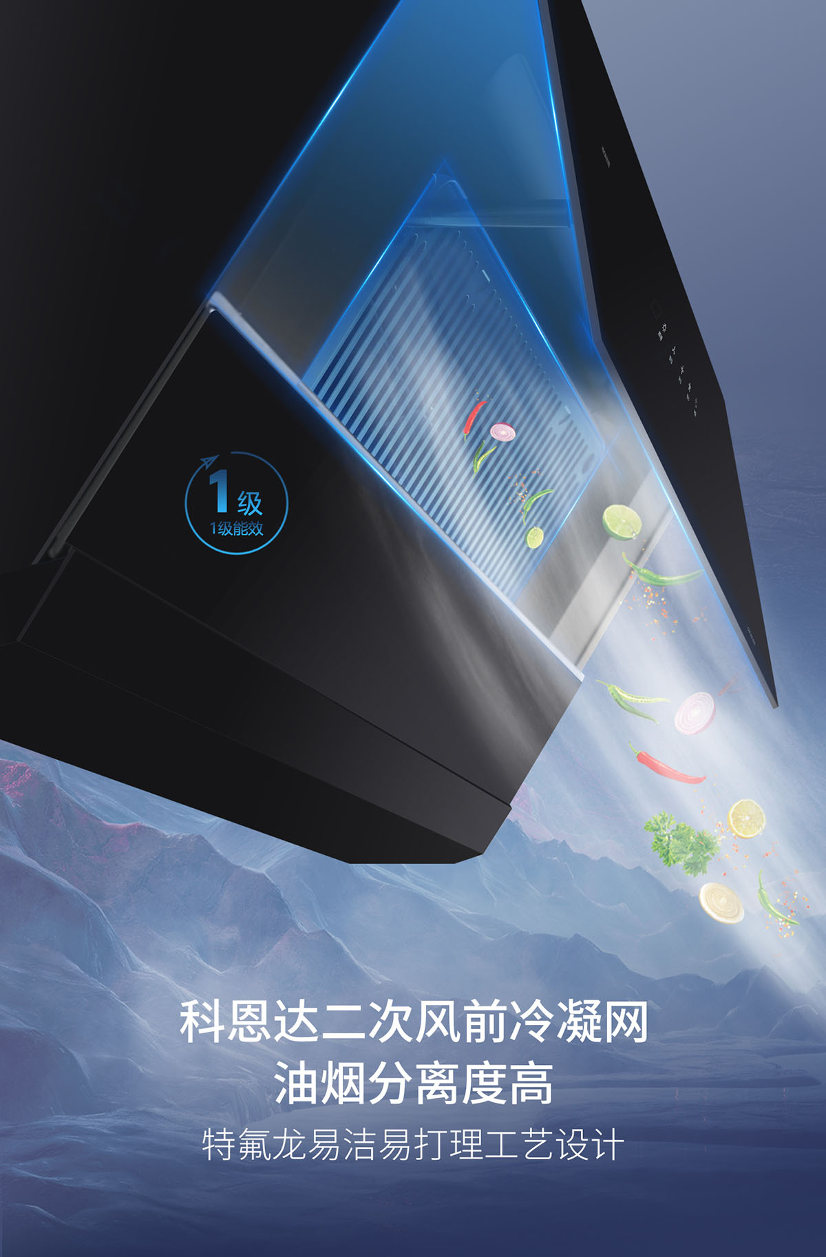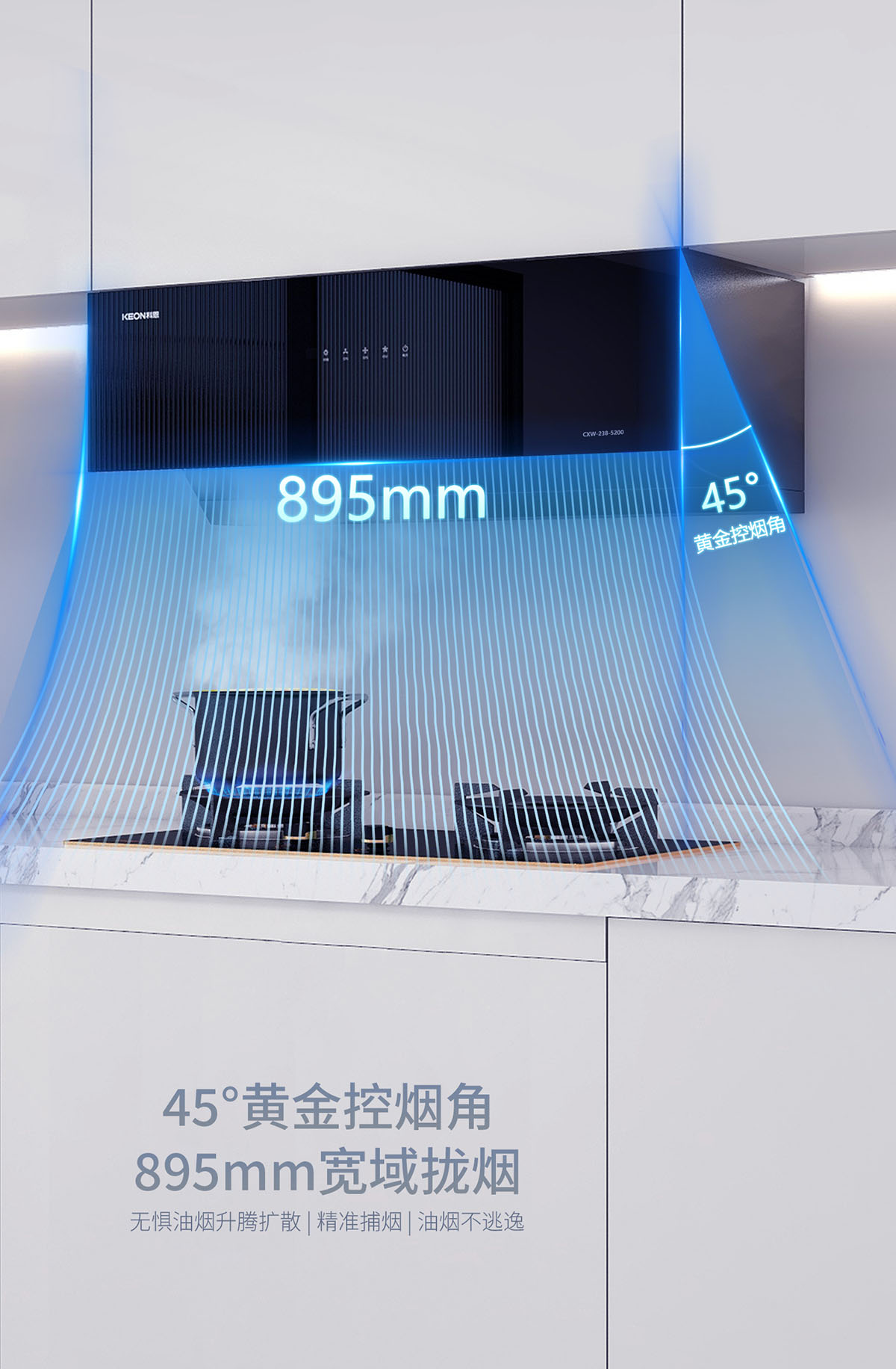 • 智啟式大隔煙屏,黃金控?zé)熃窃O(shè)計(jì),油煙不逃逸